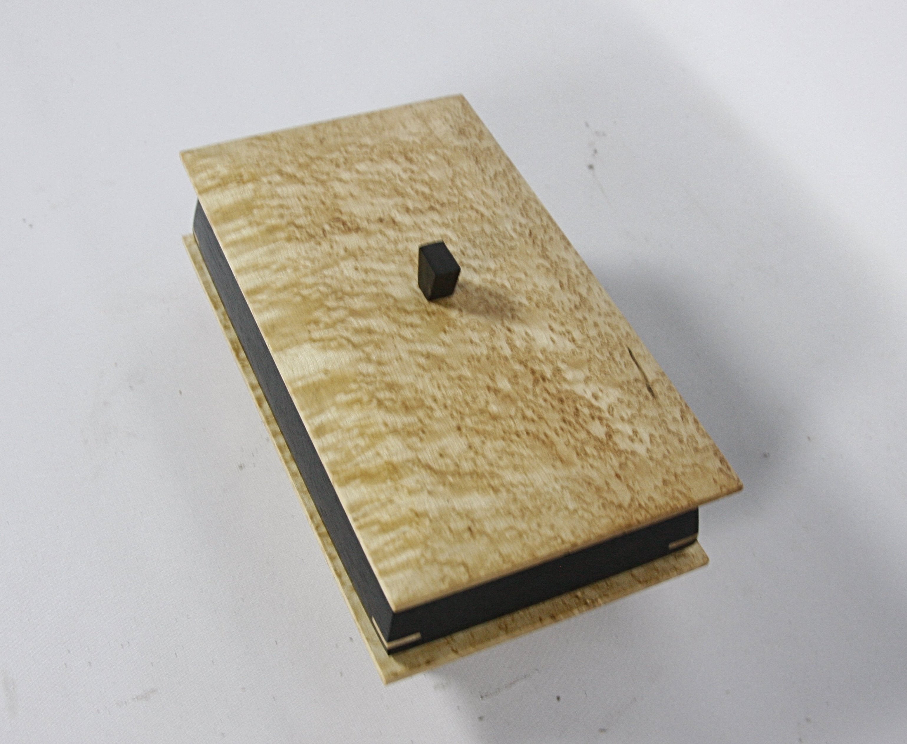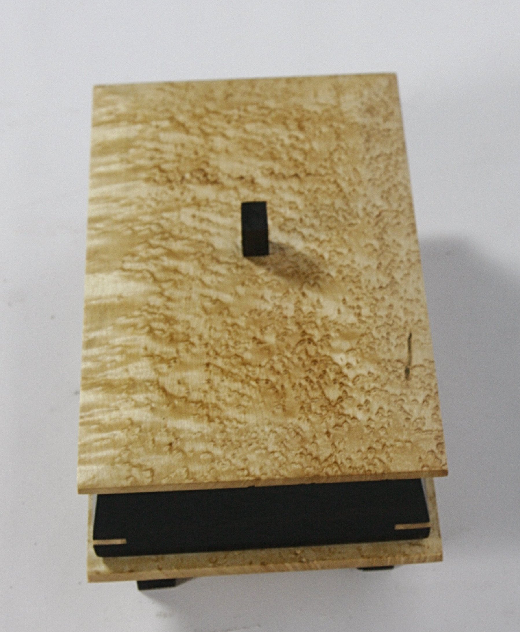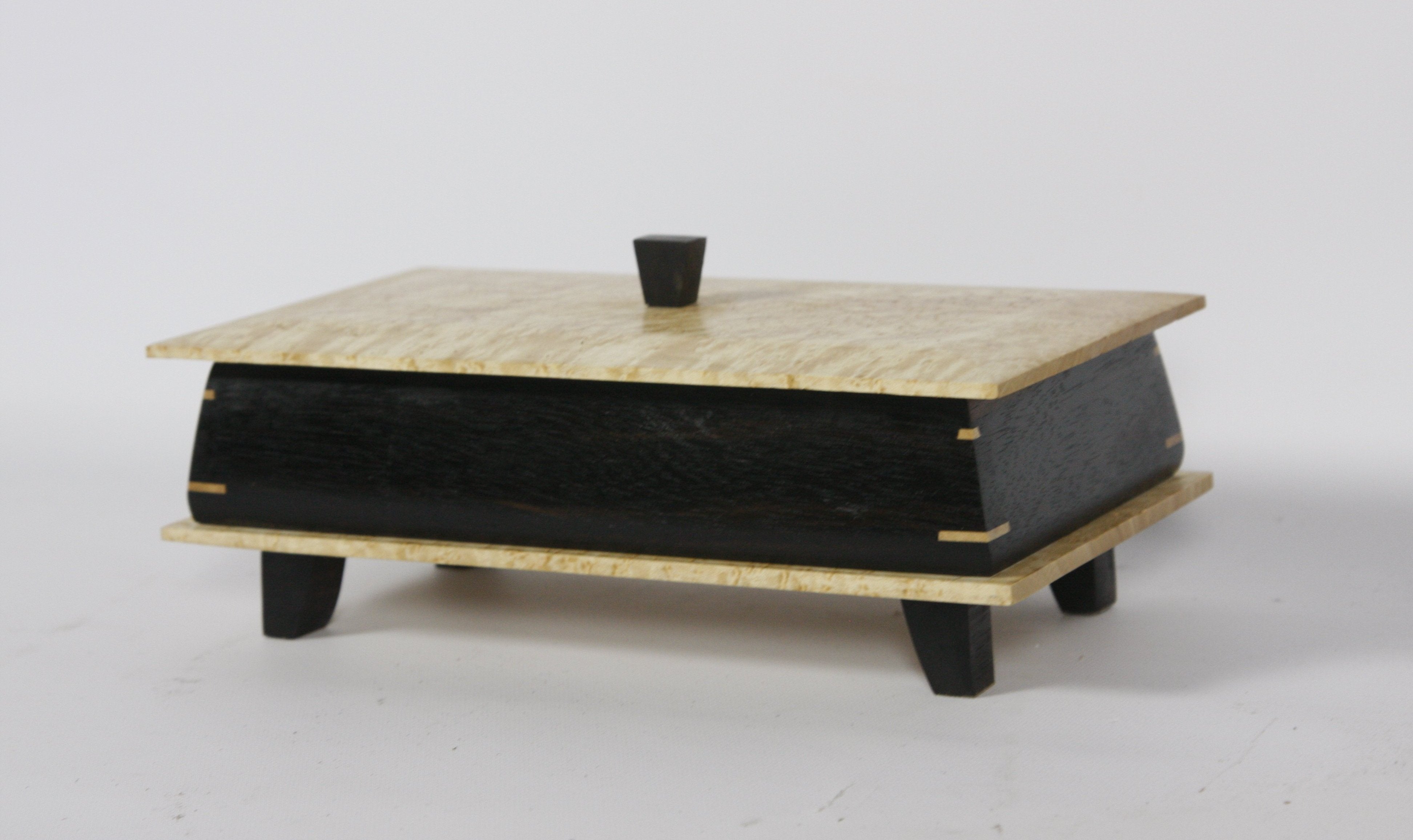 Heirloom memento boxes hand crafted by Live Edge Artisan, Scott Myers. Each box is a one-of-a-kind, with Myers using only the finest hardwoods in his vast collection. Featured in this incredible memento box are Macassar Ebony and Birds Eye Maple. Store your keep sakes or pass on as an heirloom gift.