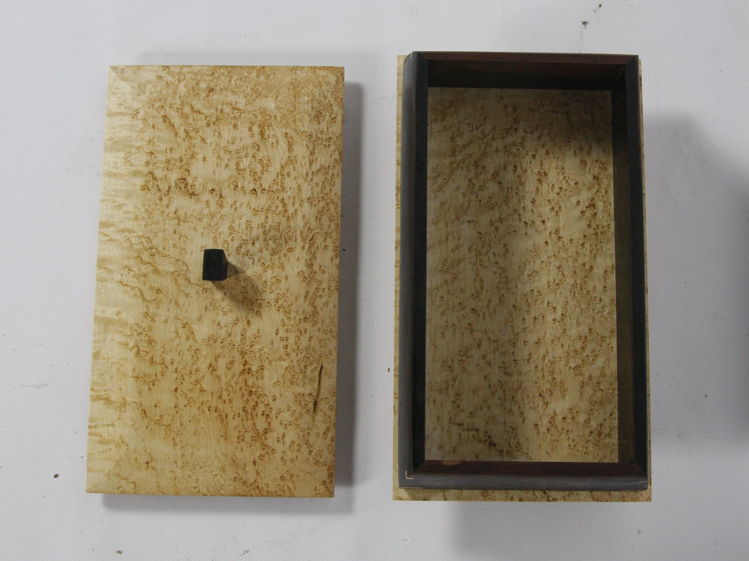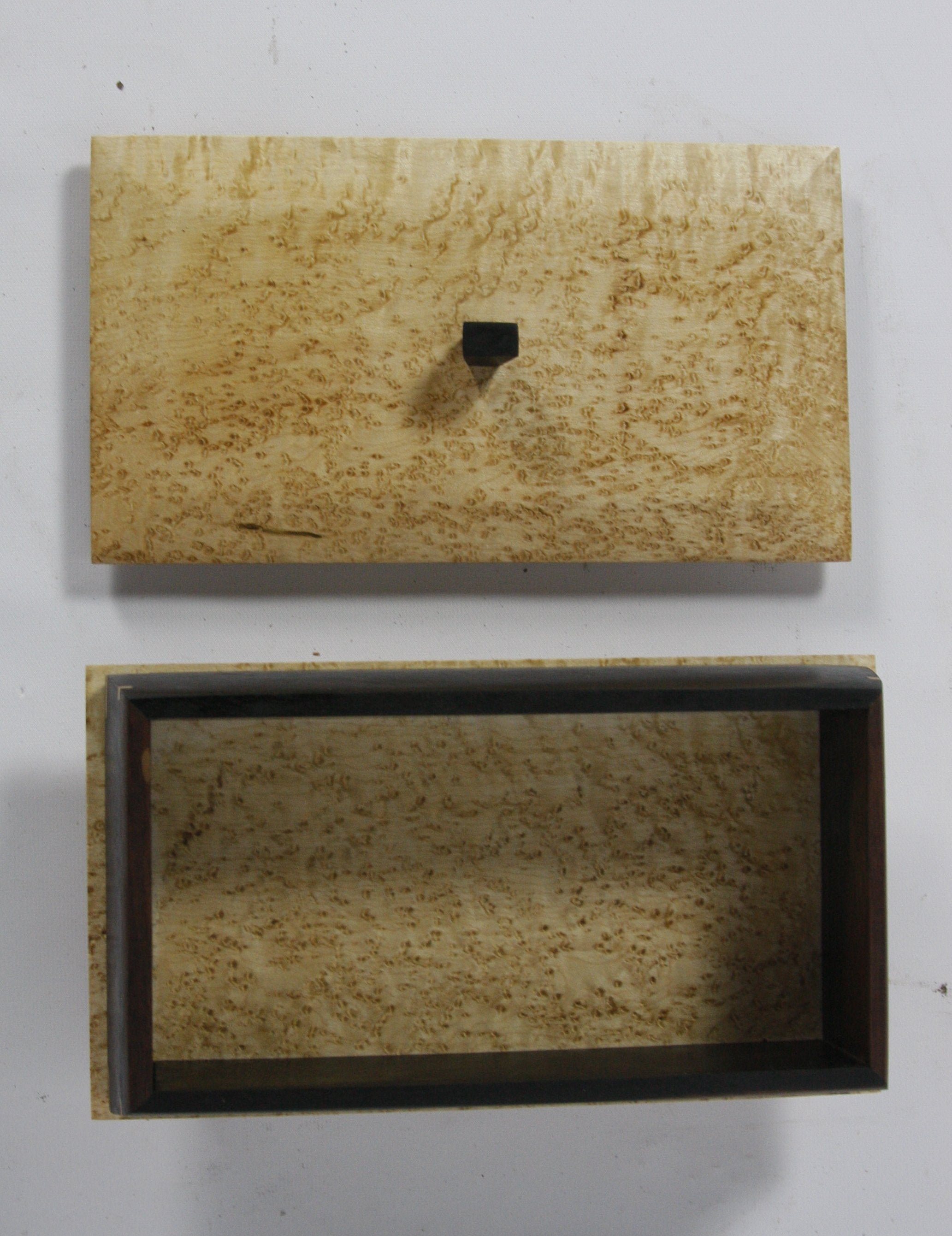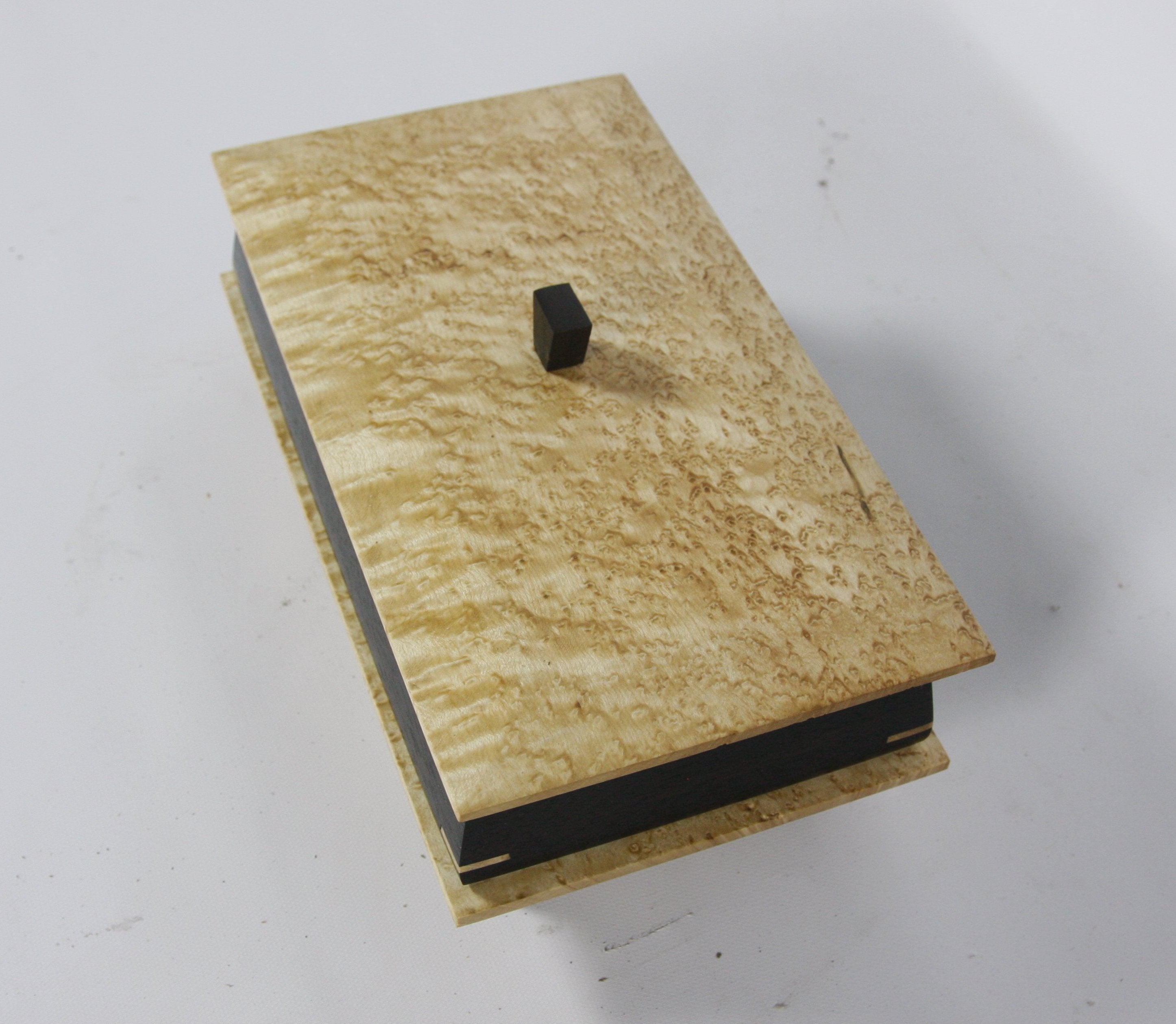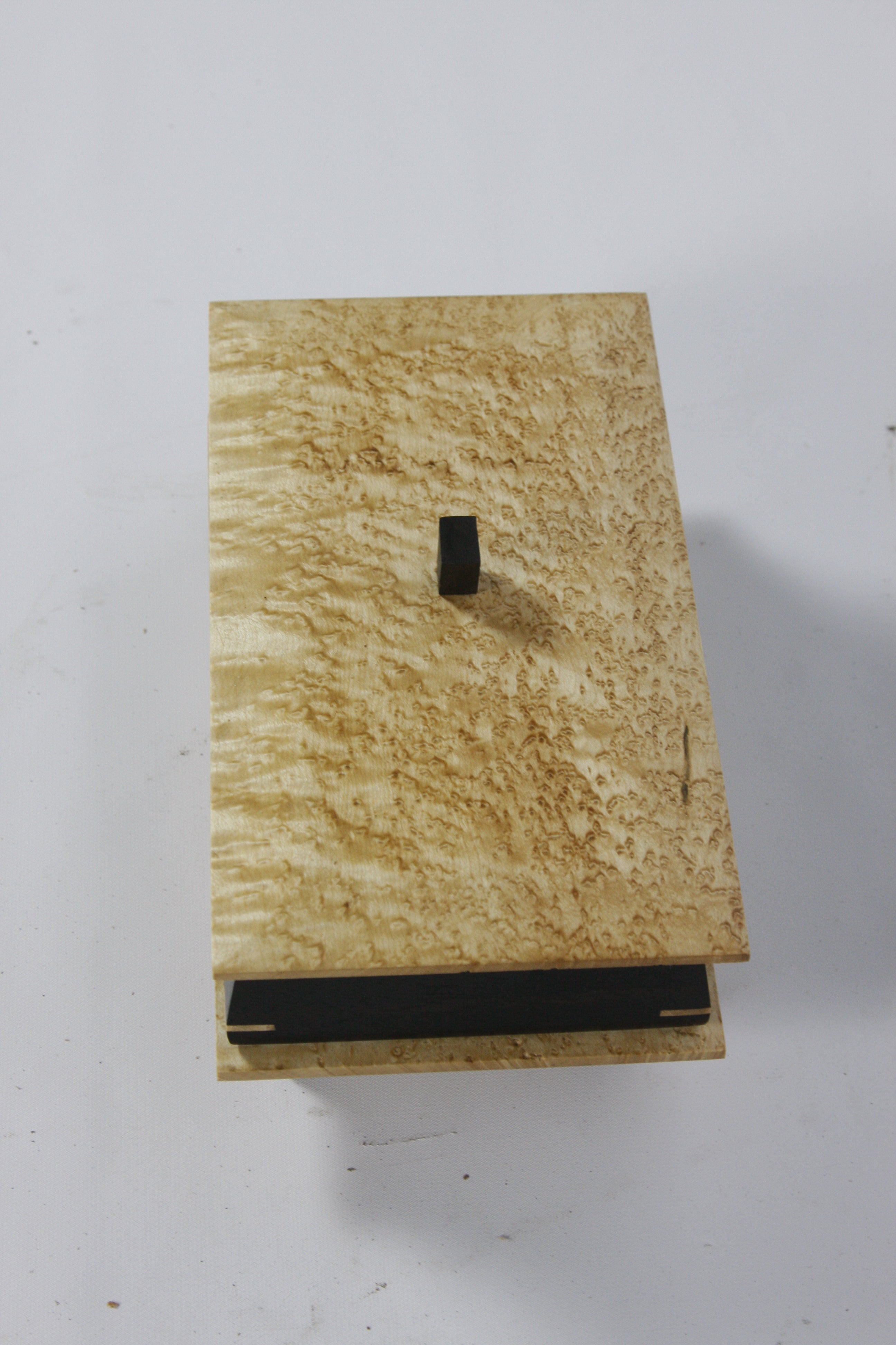 Heirloom memento boxes hand crafted by Live Edge Artisan, Scott Myers. Each box is a one-of-a-kind, with Myers using only the finest hardwoods in his vast collection. Featured in this incredible memento box are Macassar Ebony and Birds Eye Maple. Store your keep sakes or pass on as an heirloom gift.