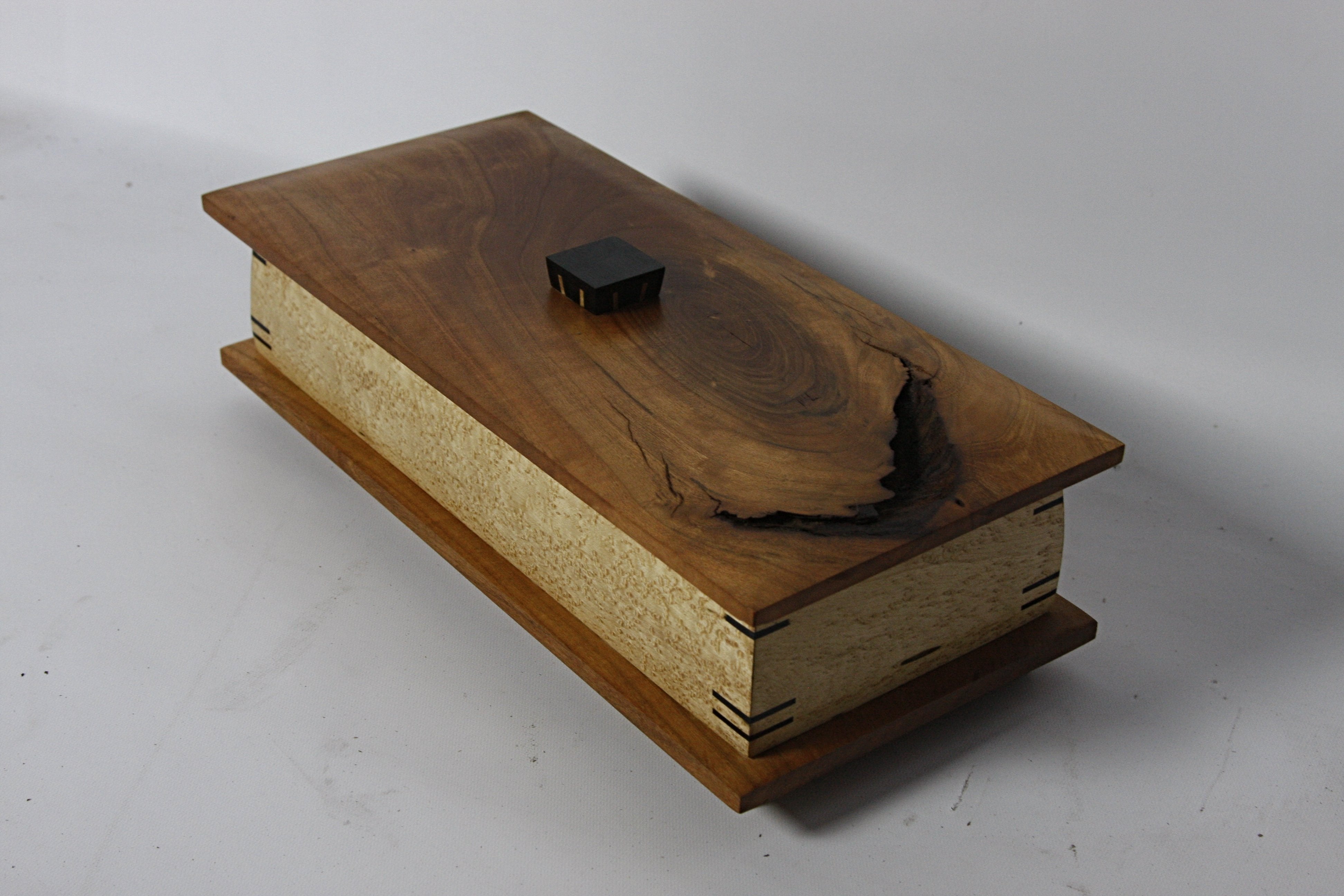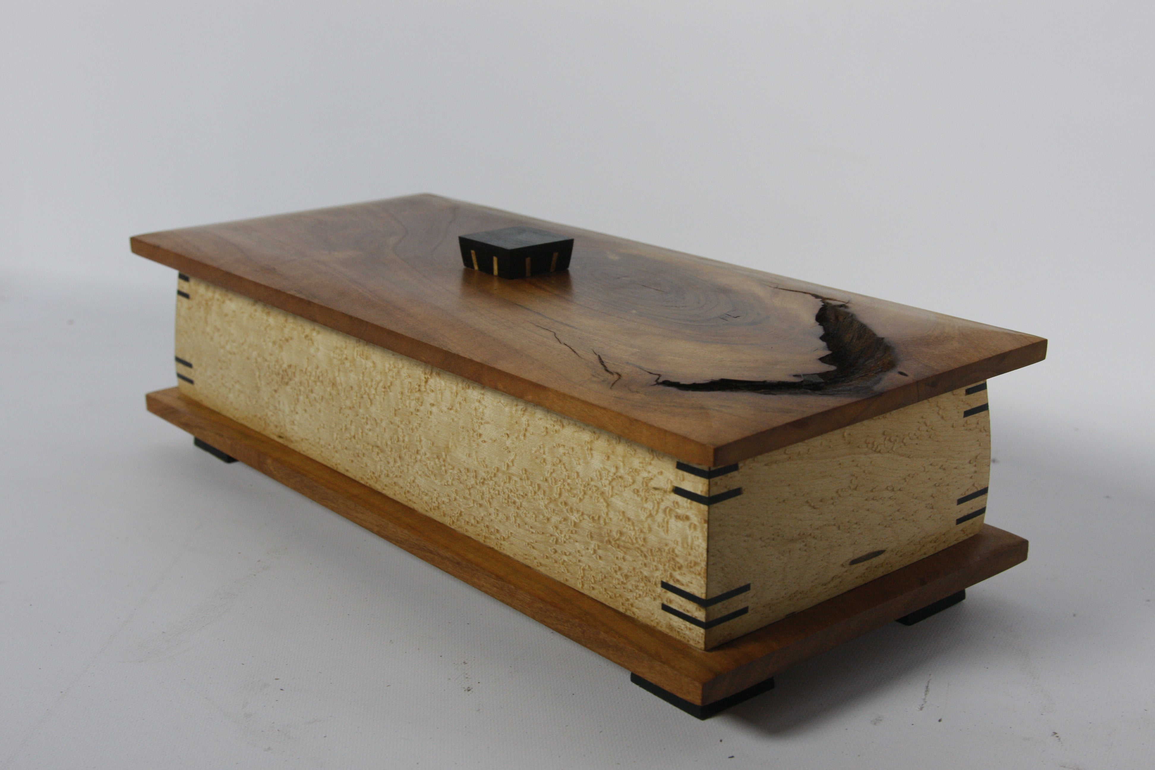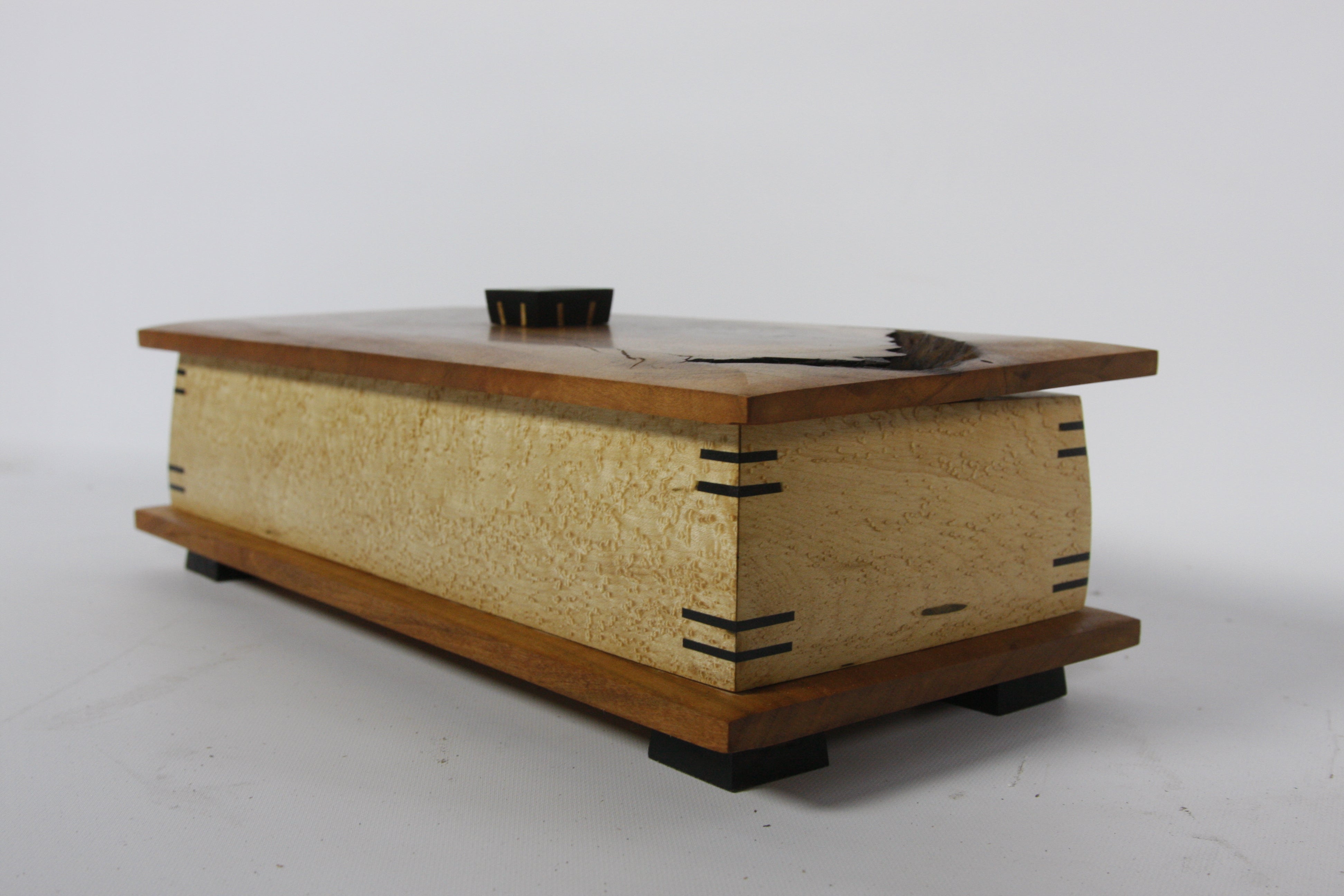 Live Edge Artisan Memento Box: Black Walnut, Birds Eye Maple & Macassar Ebony