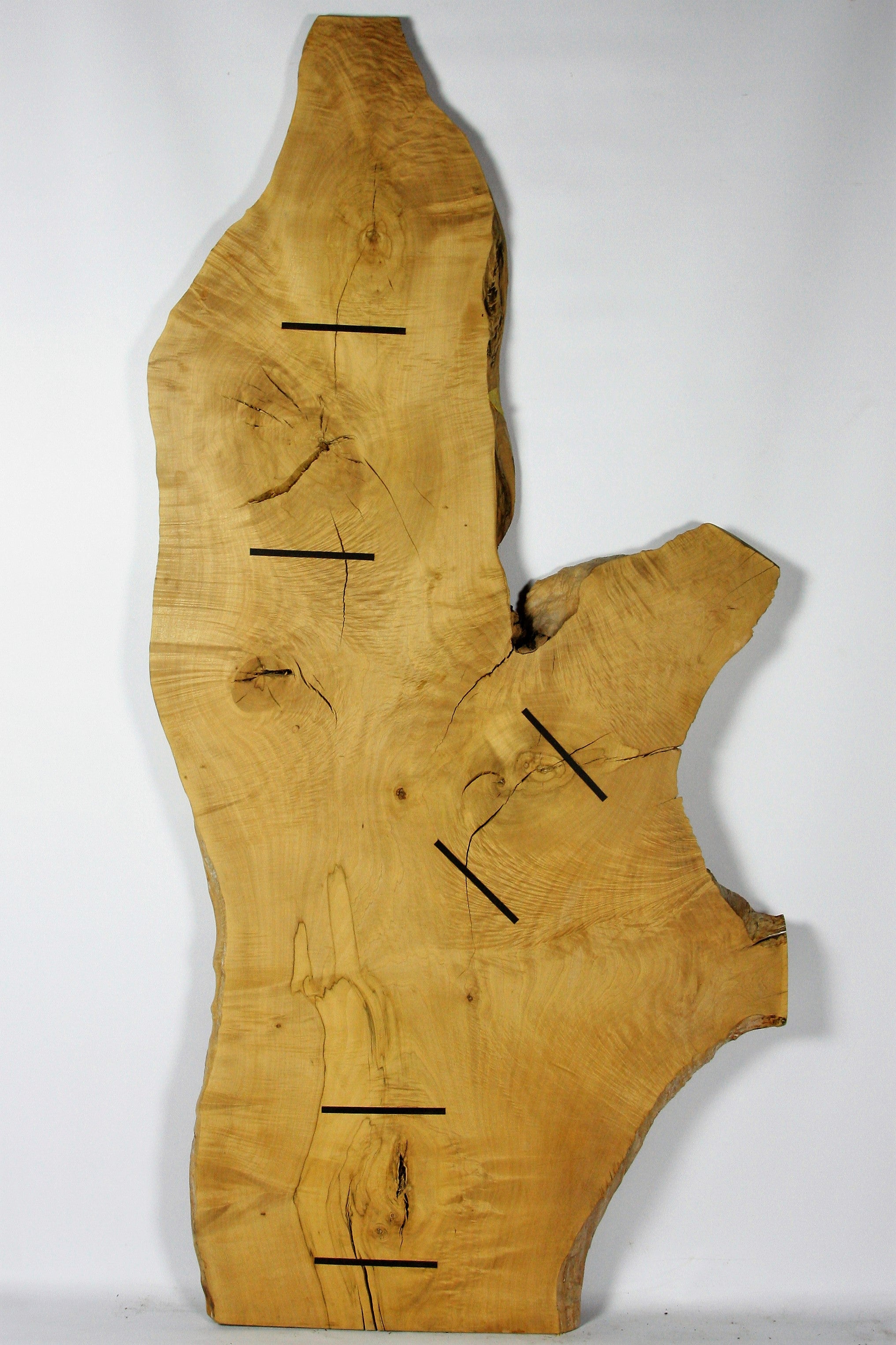 This beautiful mid-sized Norwegian Maple live edge table, with Gabon Ebony embellishments, is perfect for a coffee table, small dining table or desk. This live edge piece has a hand rubbed finish of 100% organic Live Edge Artisan Wood Oil & Wax. It is smooth and silky to the touch.