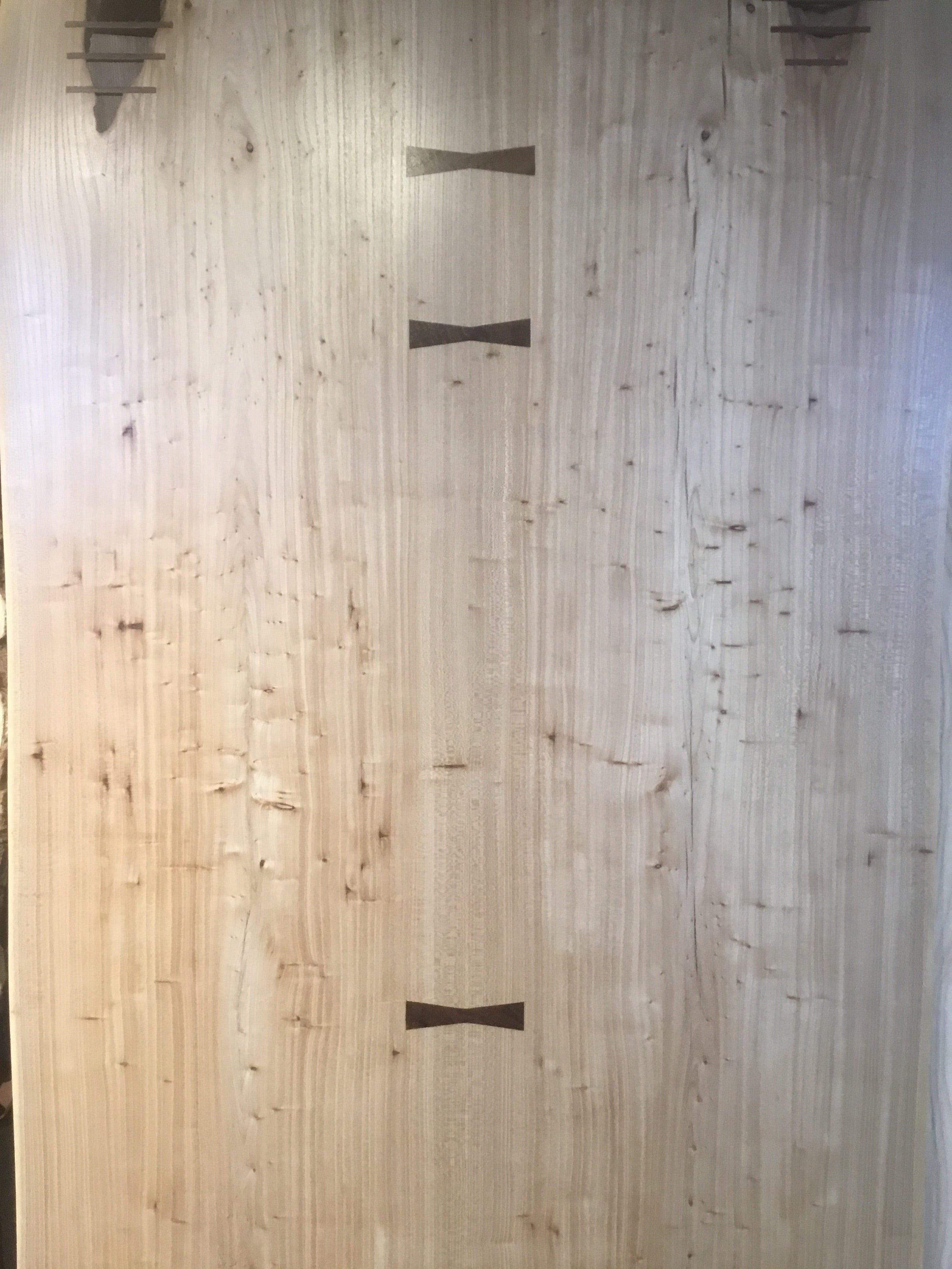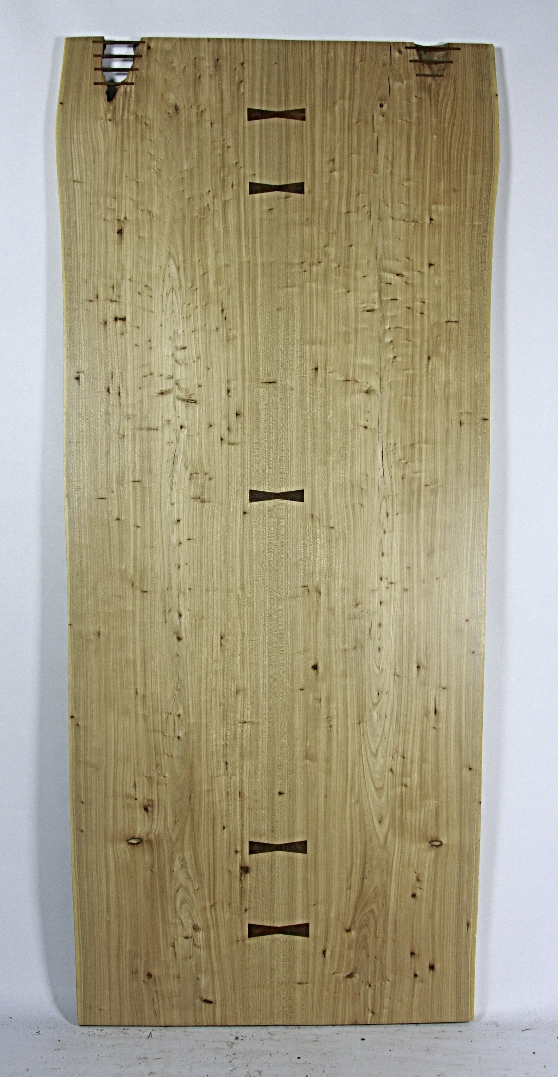 Leave your guests speechless with this incredibly figured live edge English Elm dining table. Embellished with Curly Claro Walnut inlays and finished with satin lacquer, this piece is durable as well as beautiful. Available as a finished live edge table top (fabricated steel base included in options), or with a hand crafted solid wood table base for an additional fee.