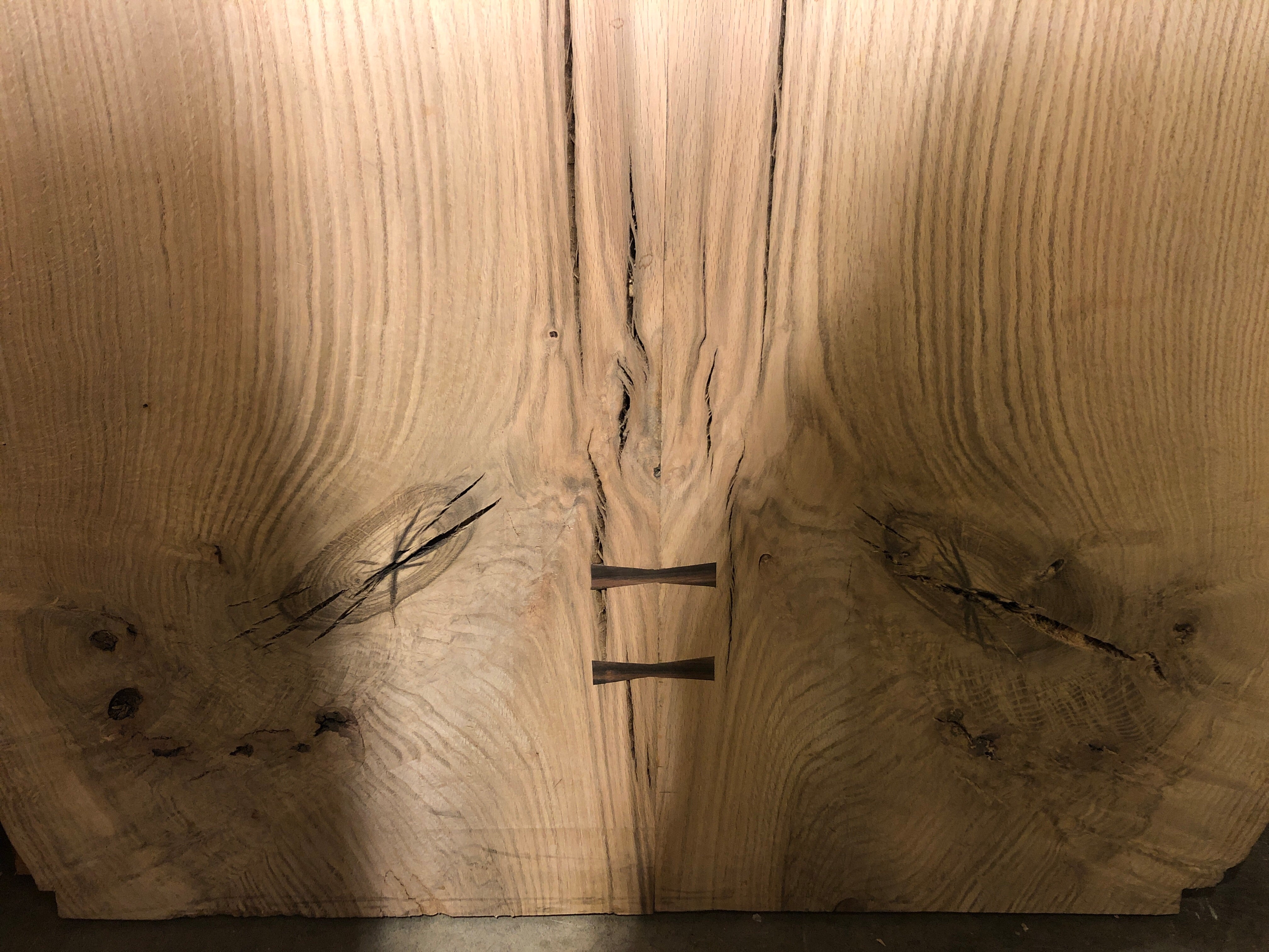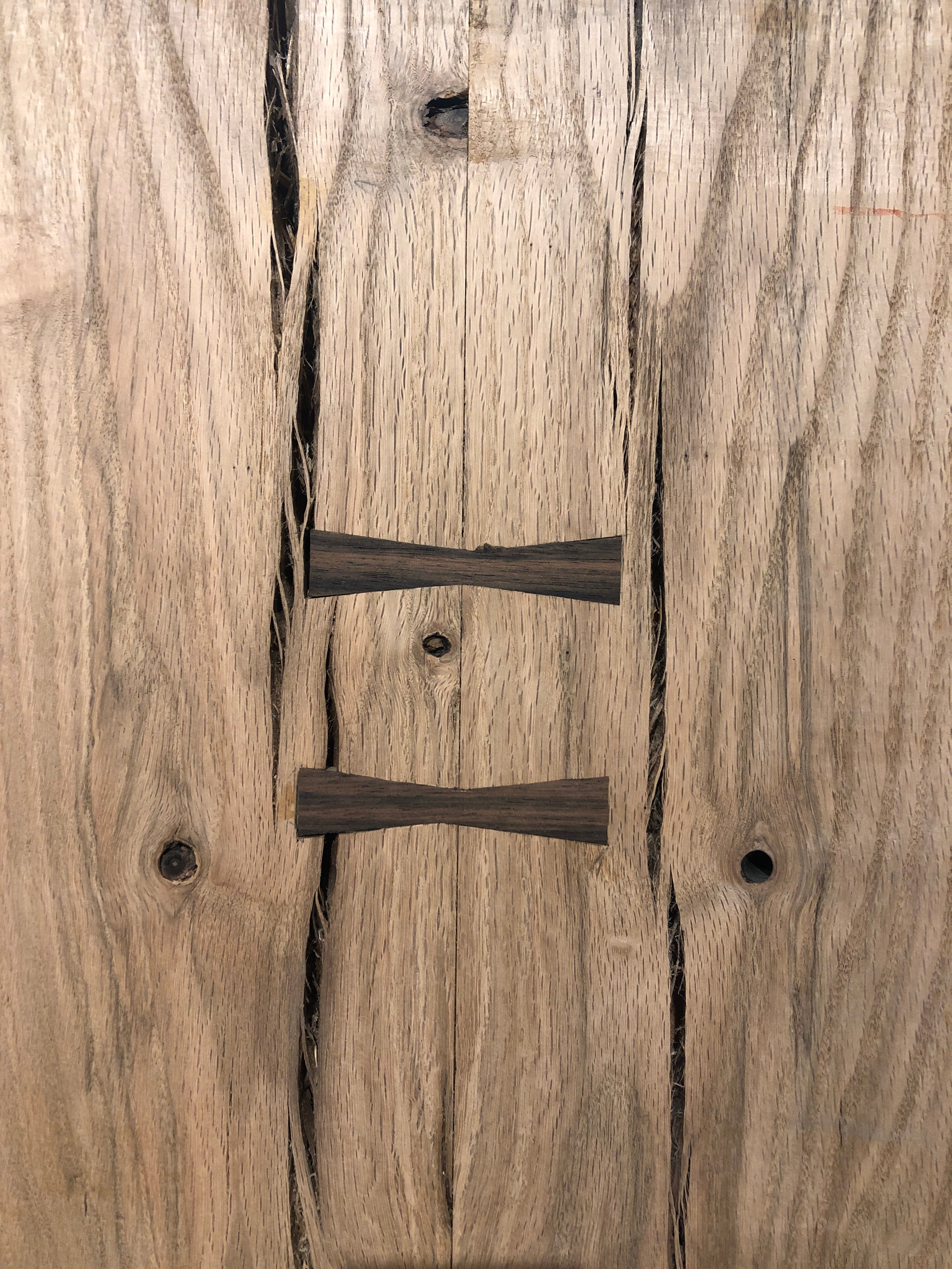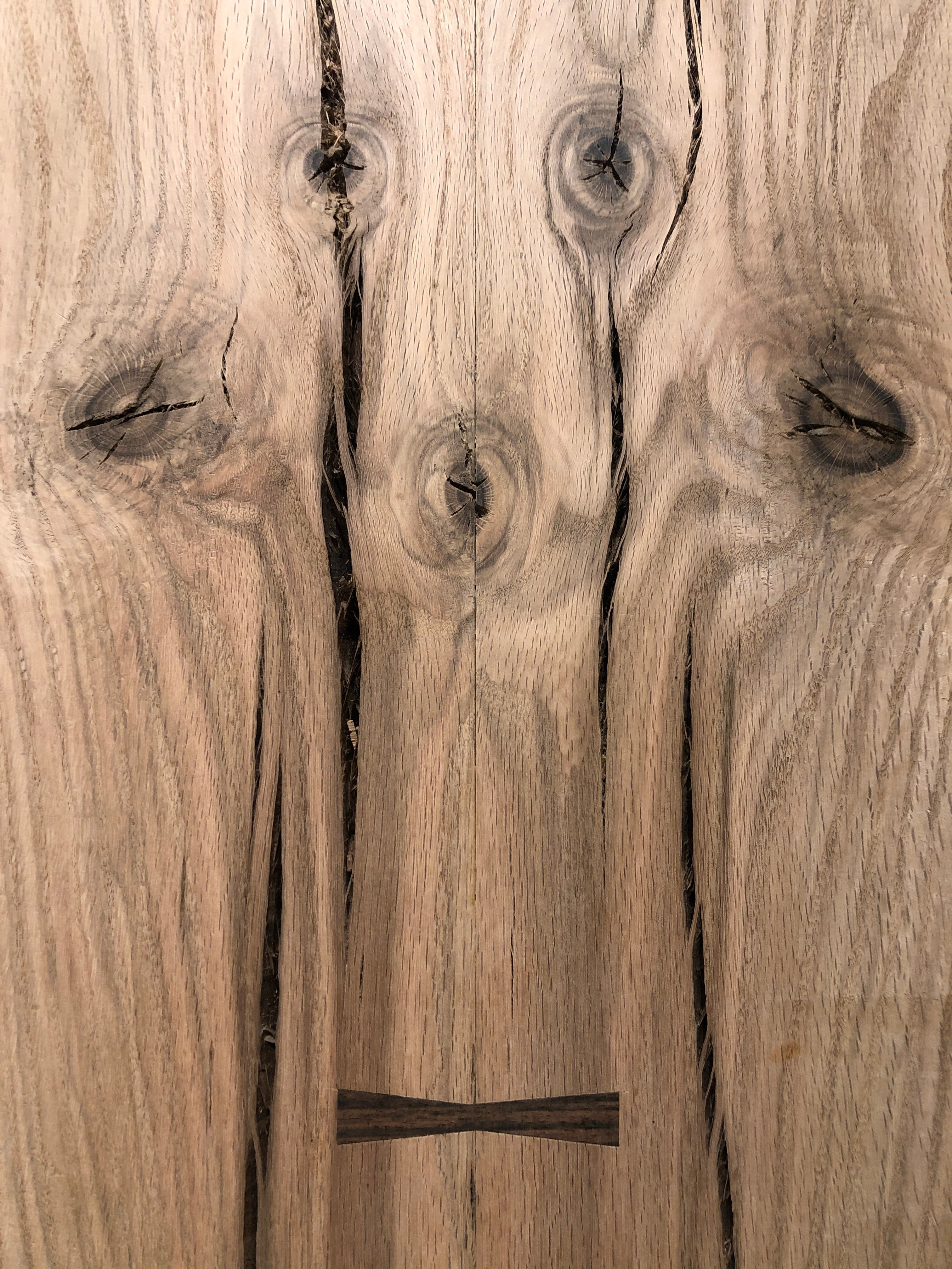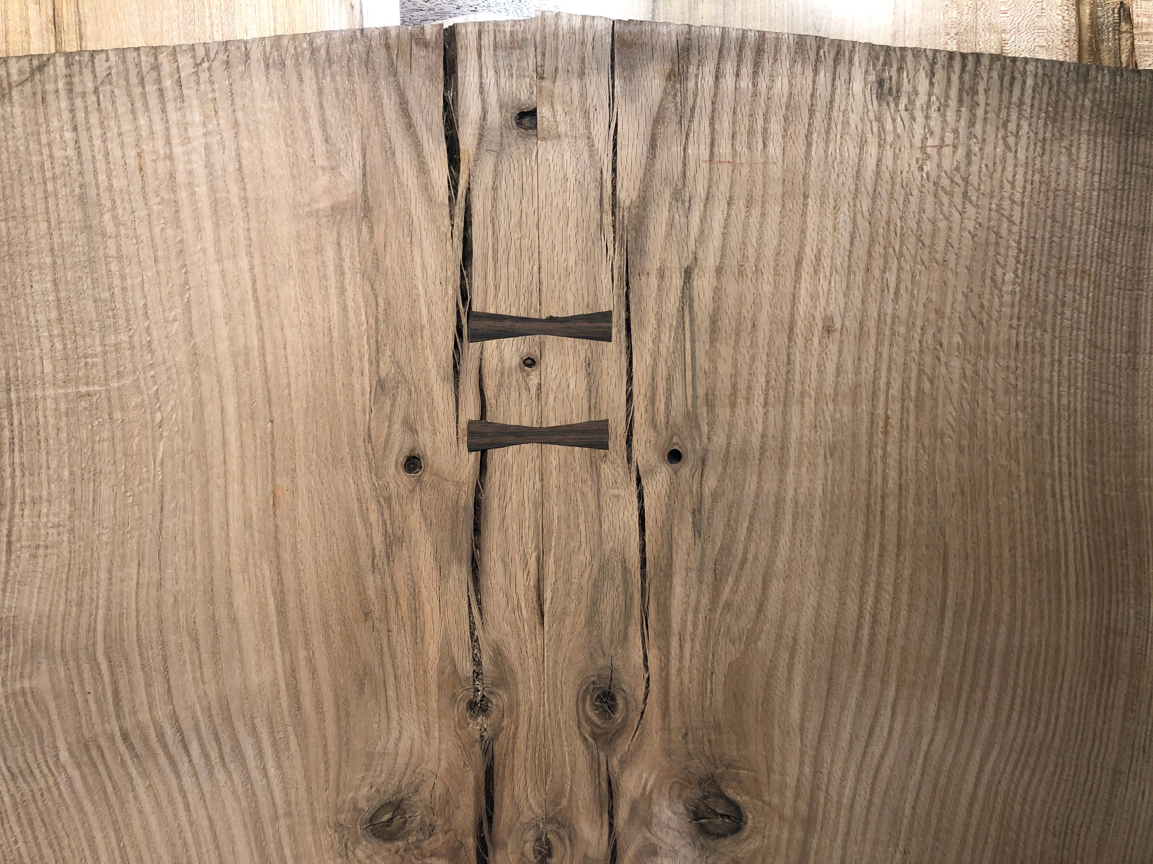 This Old Growth Red Oak table is absolutely gorgeous. Embellished with Macassar Ebony bowties, this piece is sure to make a statement. Perfect for an island top, dining table, desk and more. This piece is sold as a finished top only with options to purchase with a choice of fabricated steel or solid wood table base.