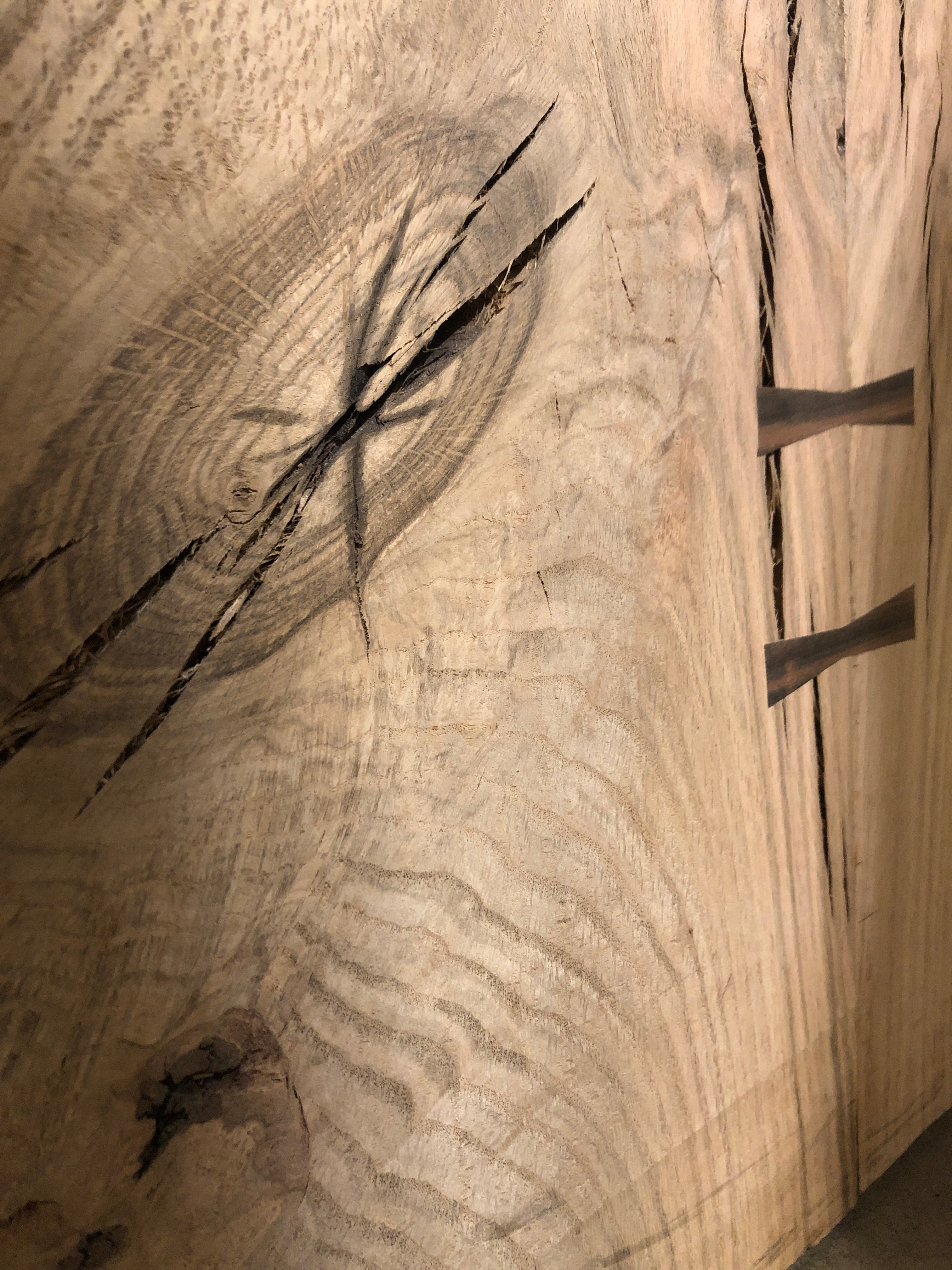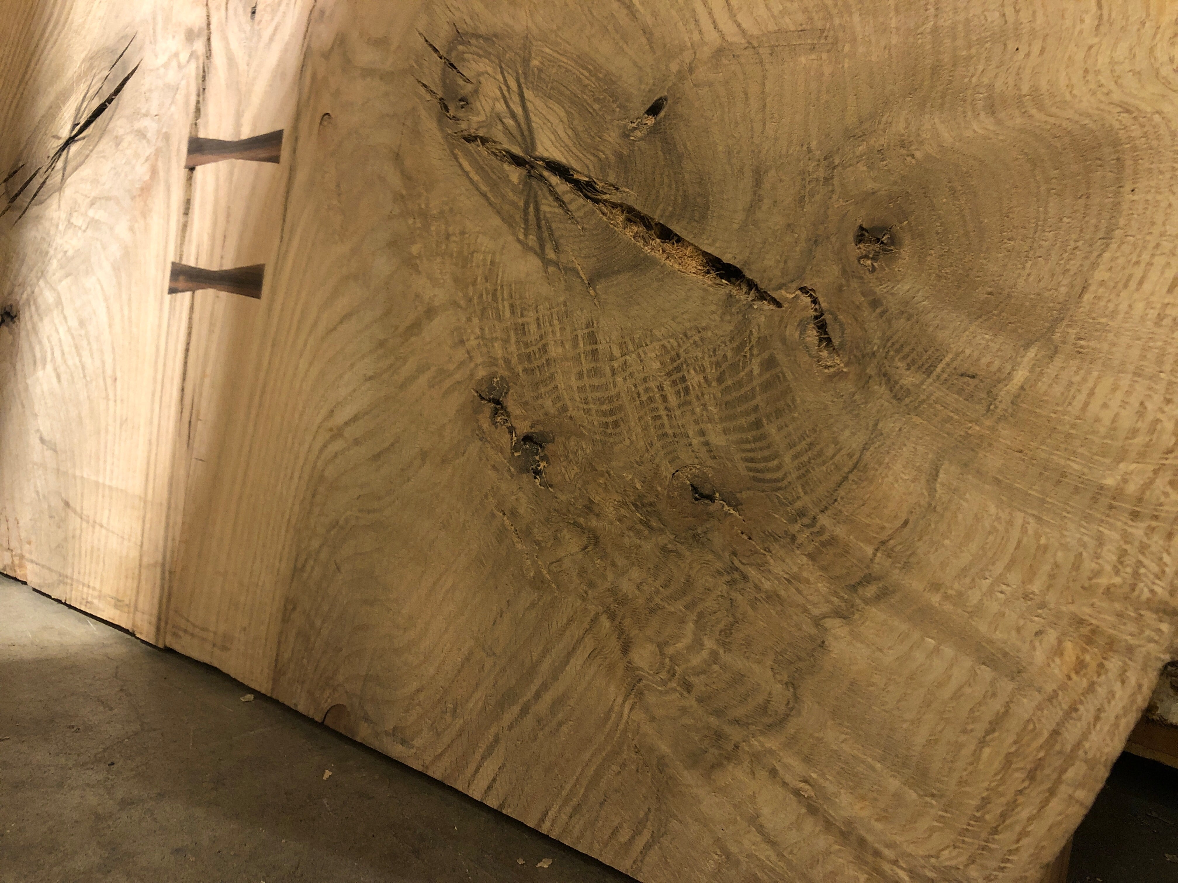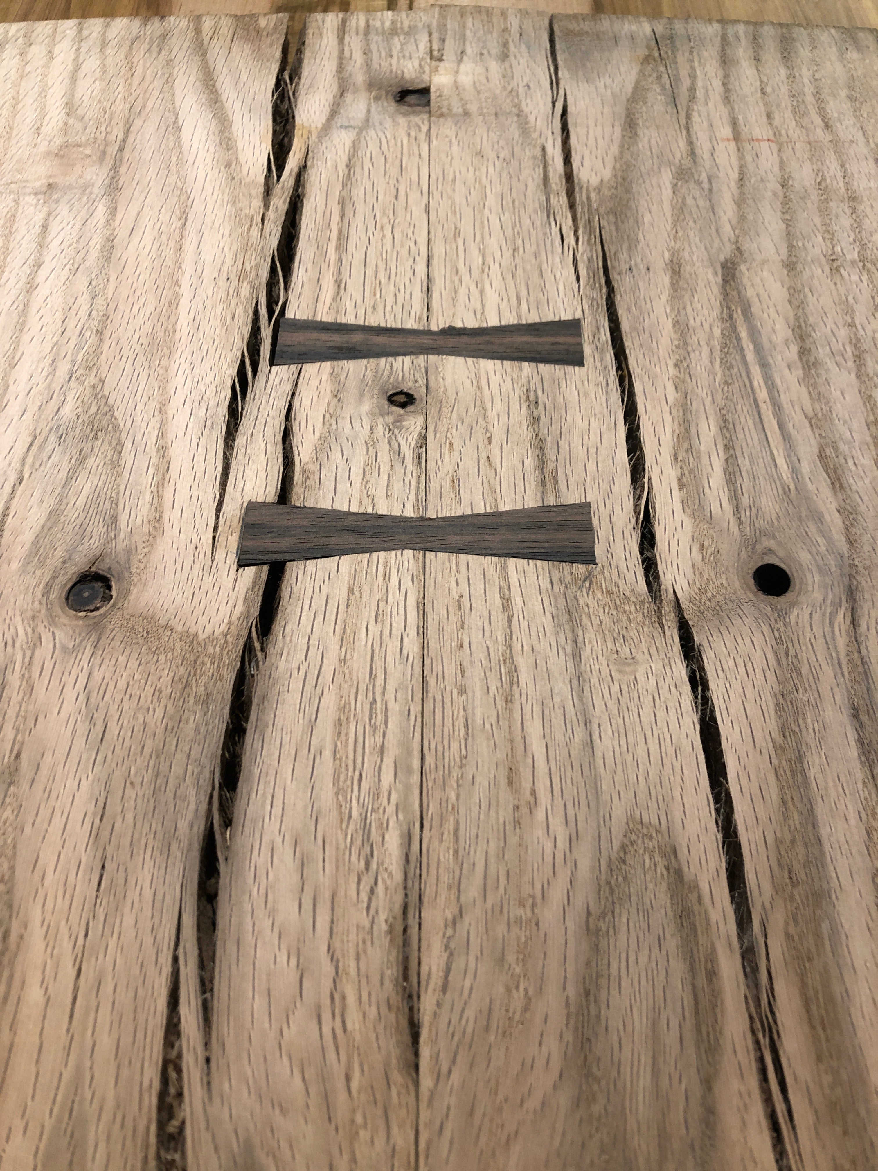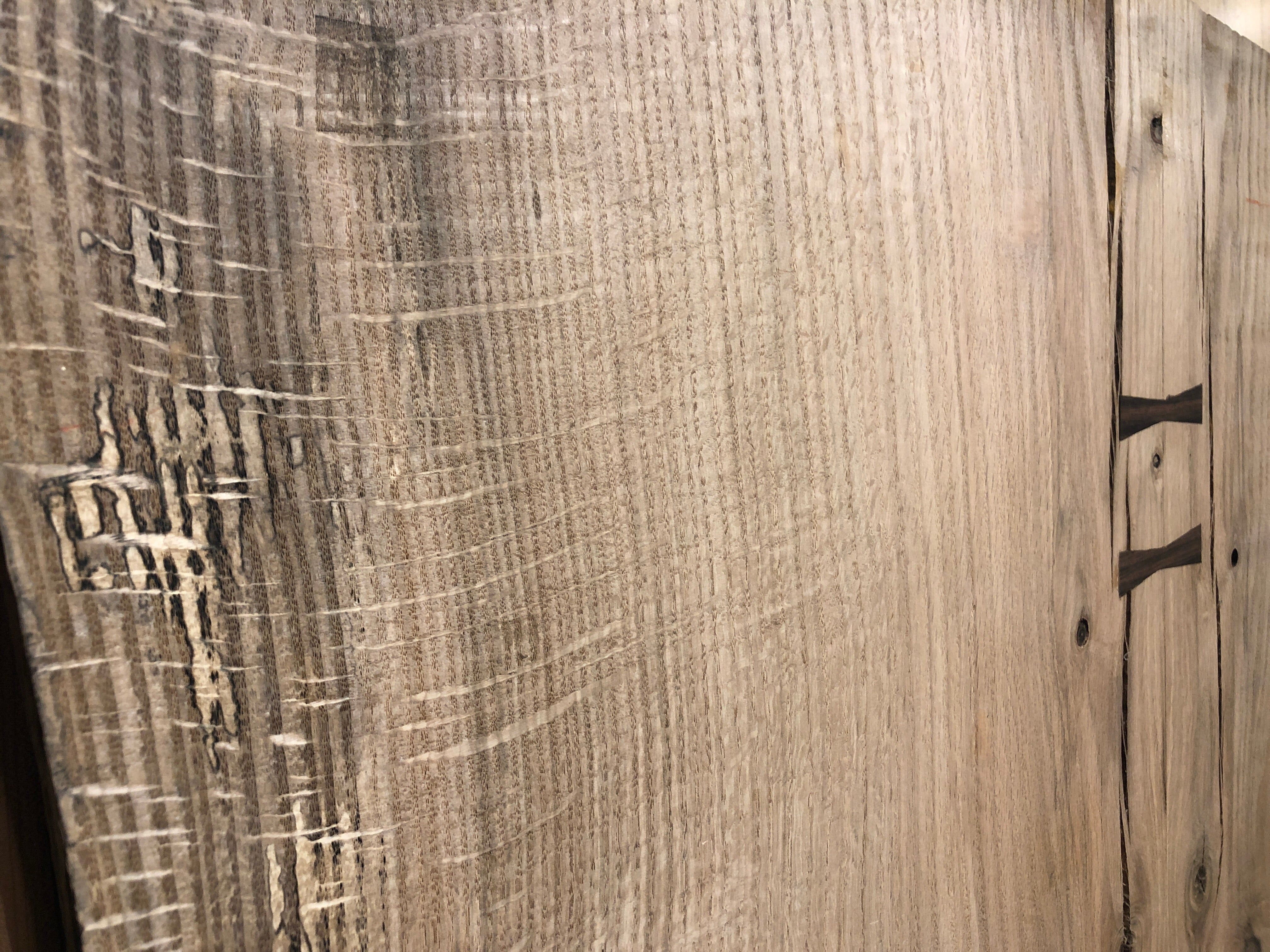 This Old Growth Red Oak table is absolutely gorgeous. Embellished with Macassar Ebony bowties, this piece is sure to make a statement. Perfect for an island top, dining table, desk and more. This piece is sold as a finished top only with options to purchase with a choice of fabricated steel or solid wood table base.