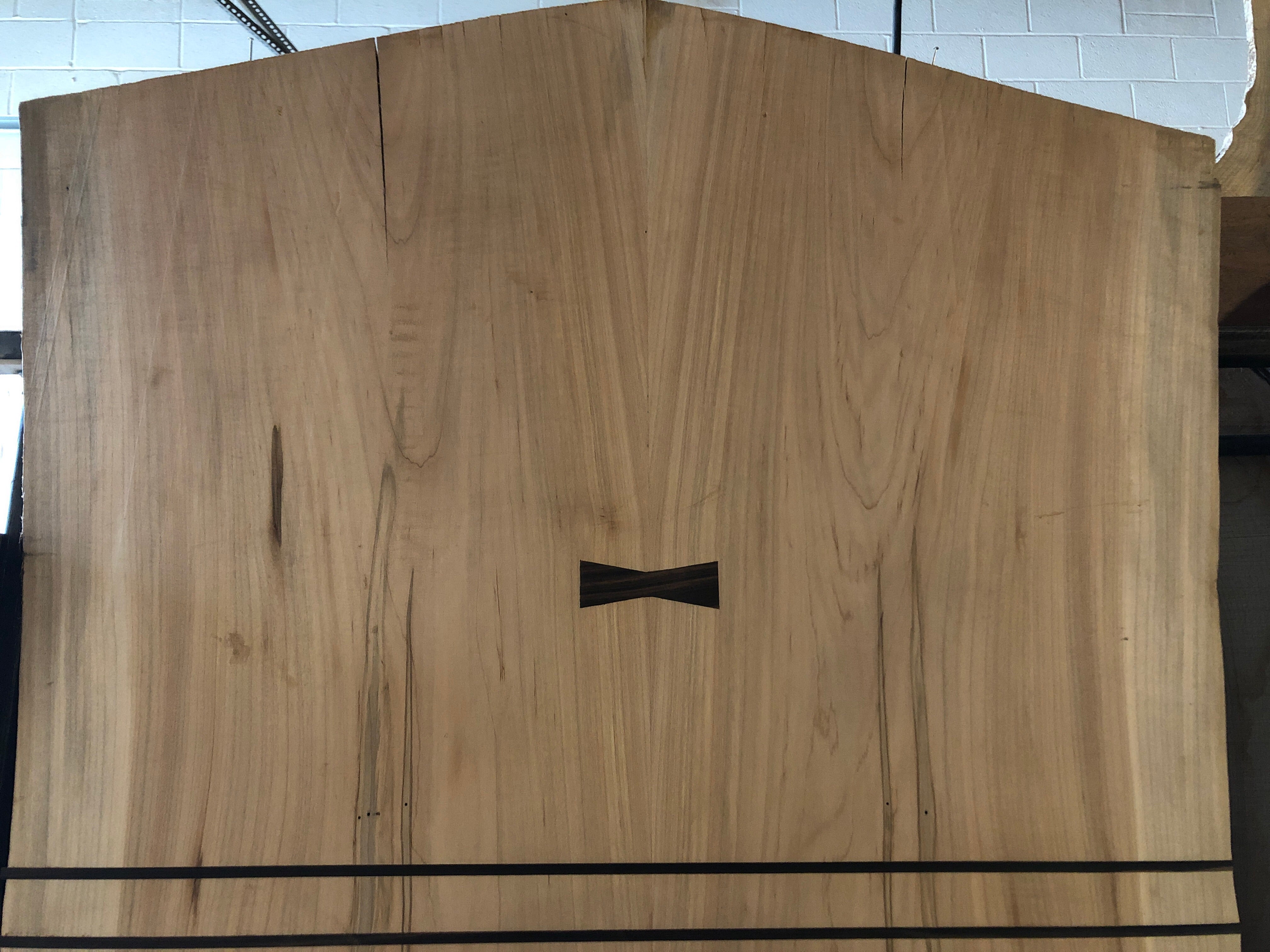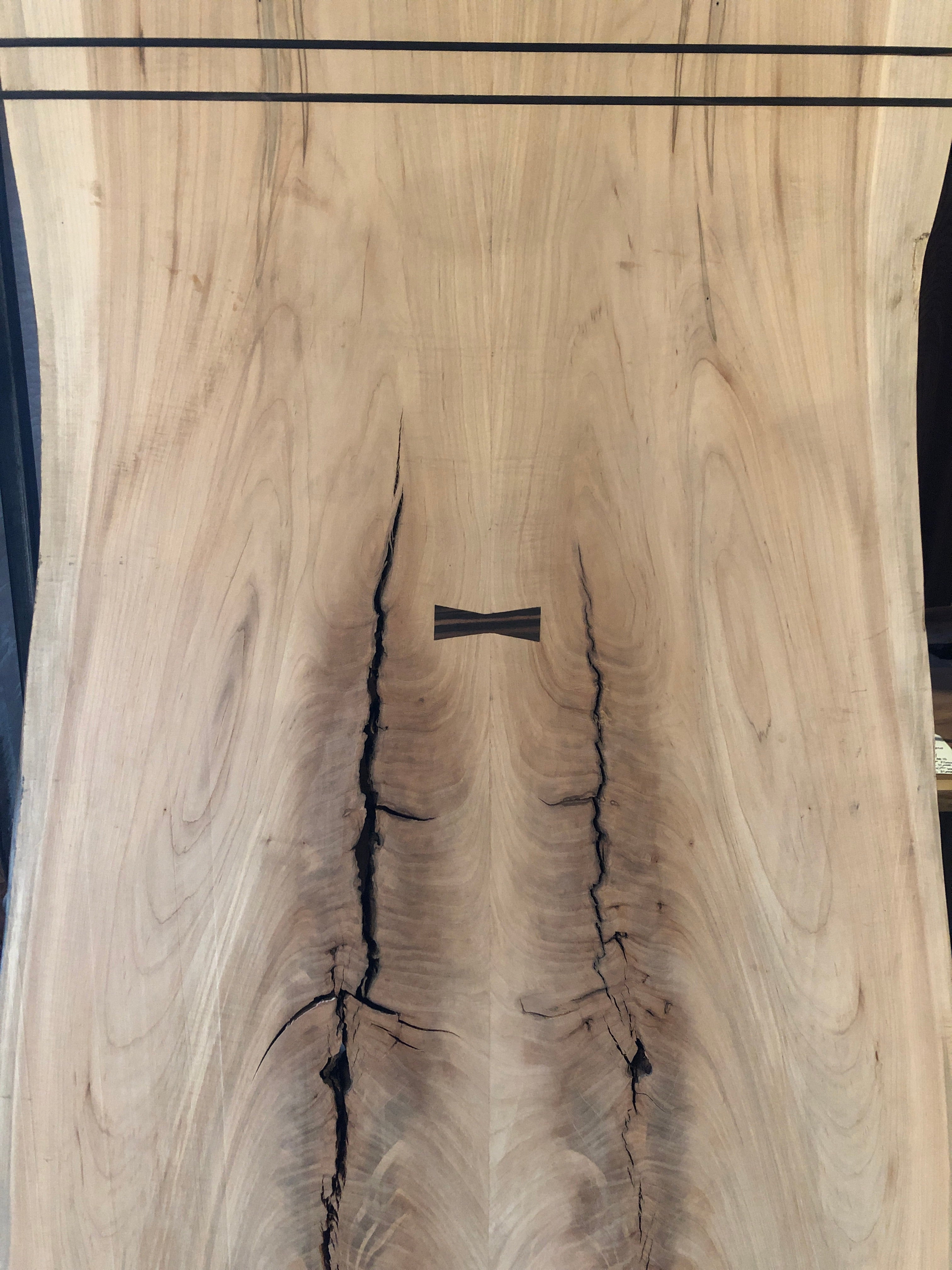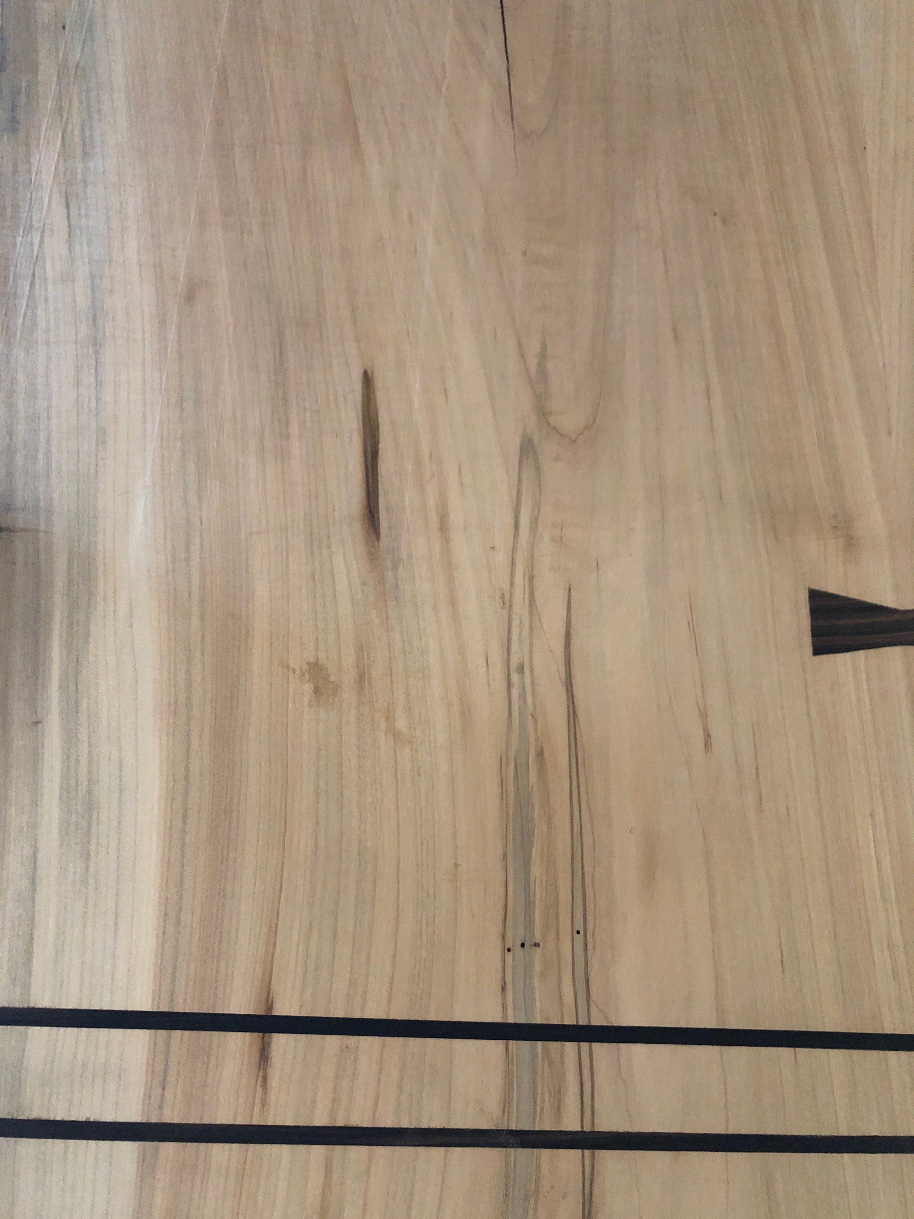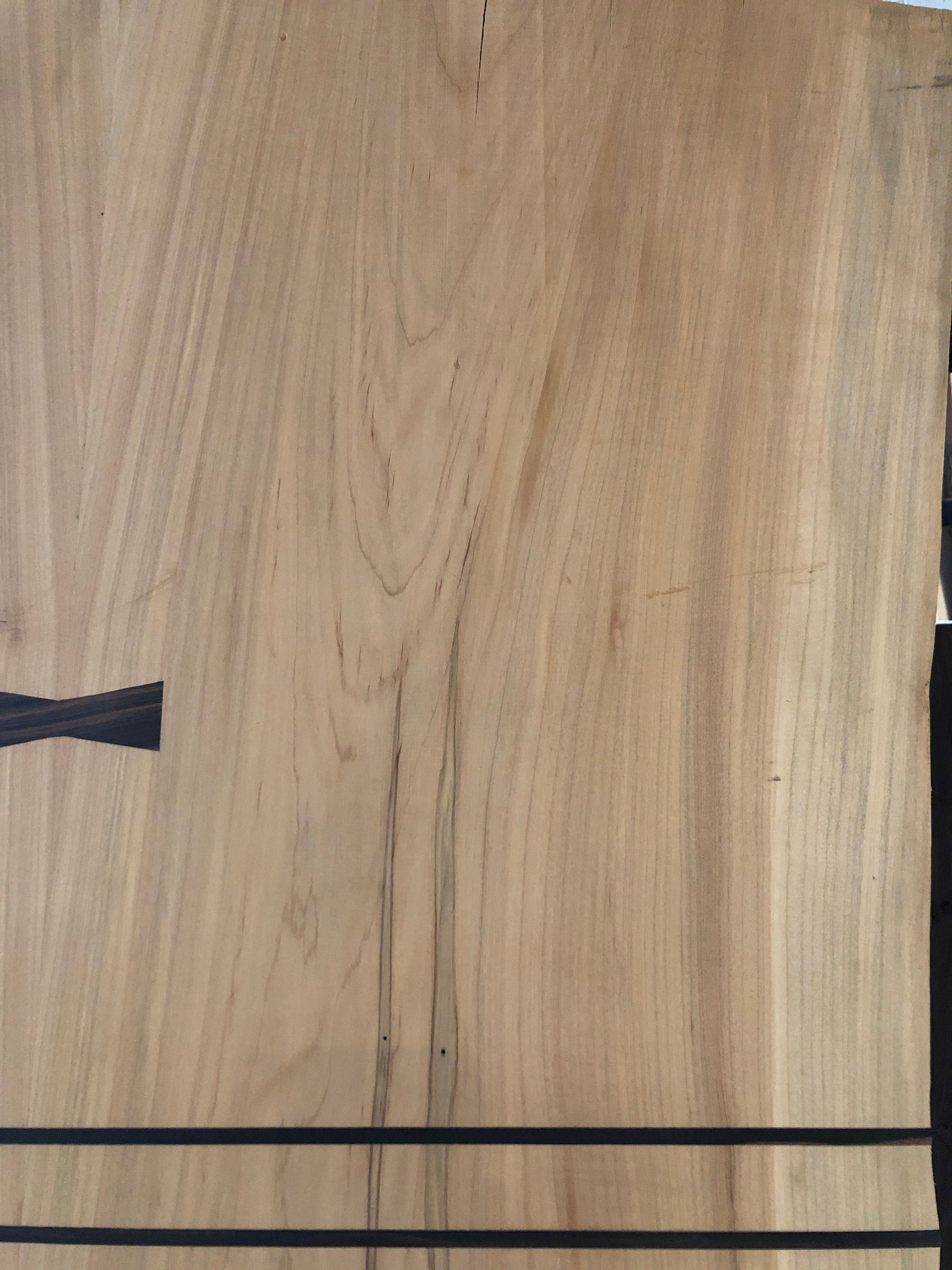 This Figured Silver Maple with Macassar Ebony inlays is an exceptional piece. Perfect for an island top, dining table, desk and more. This piece is sold as a top only with options to purchase with a choice fabricated steel or solid wood table base.