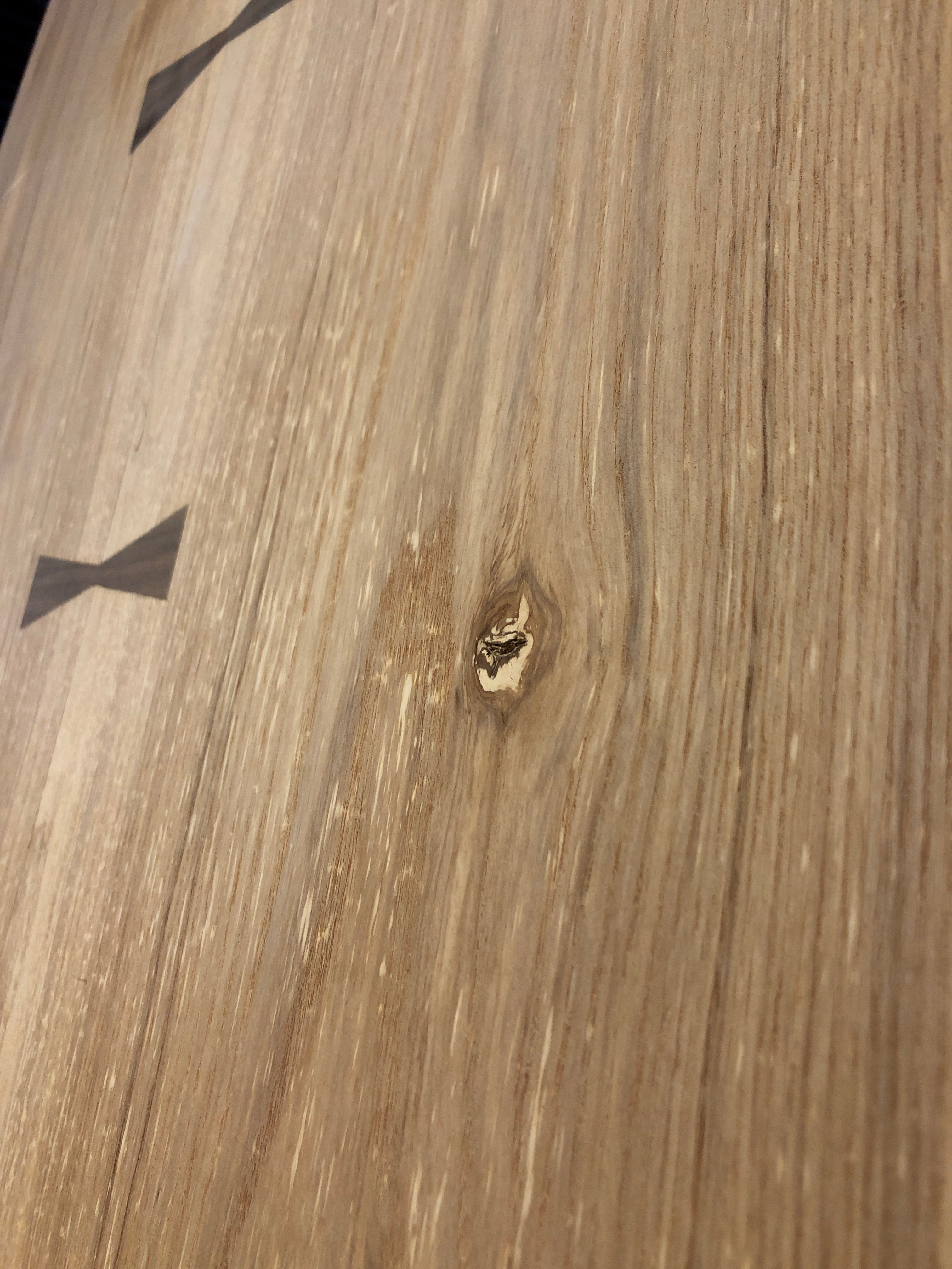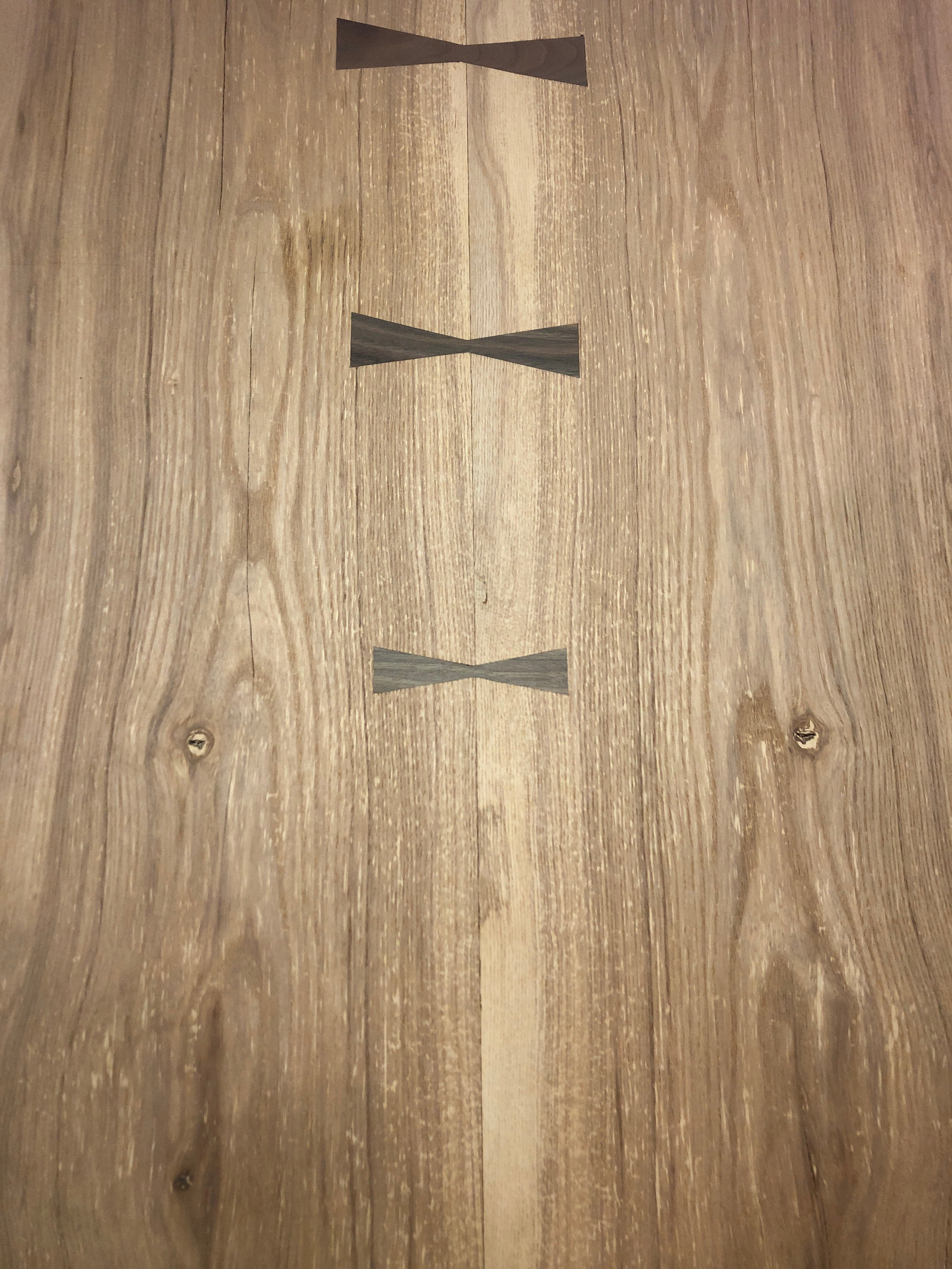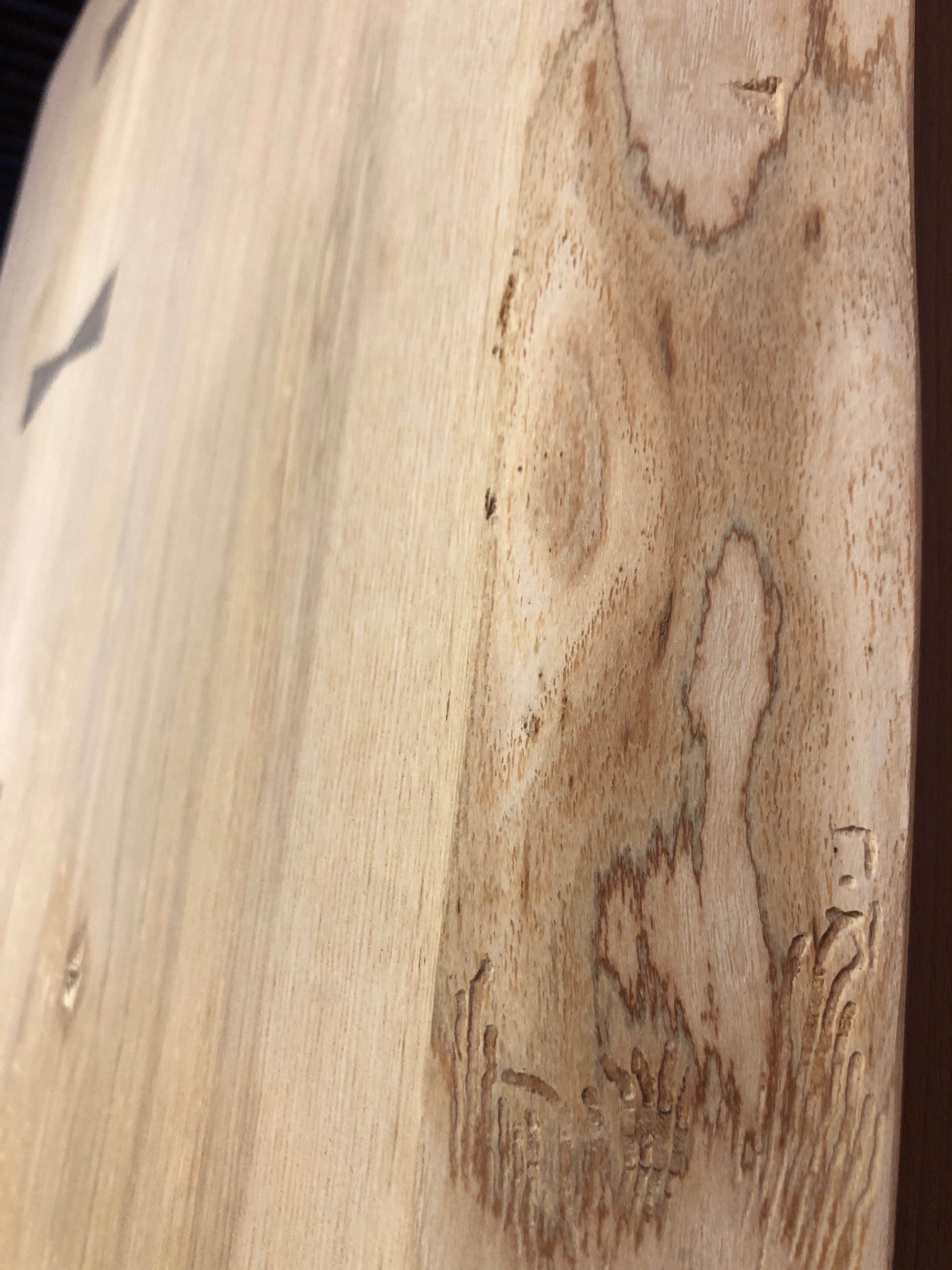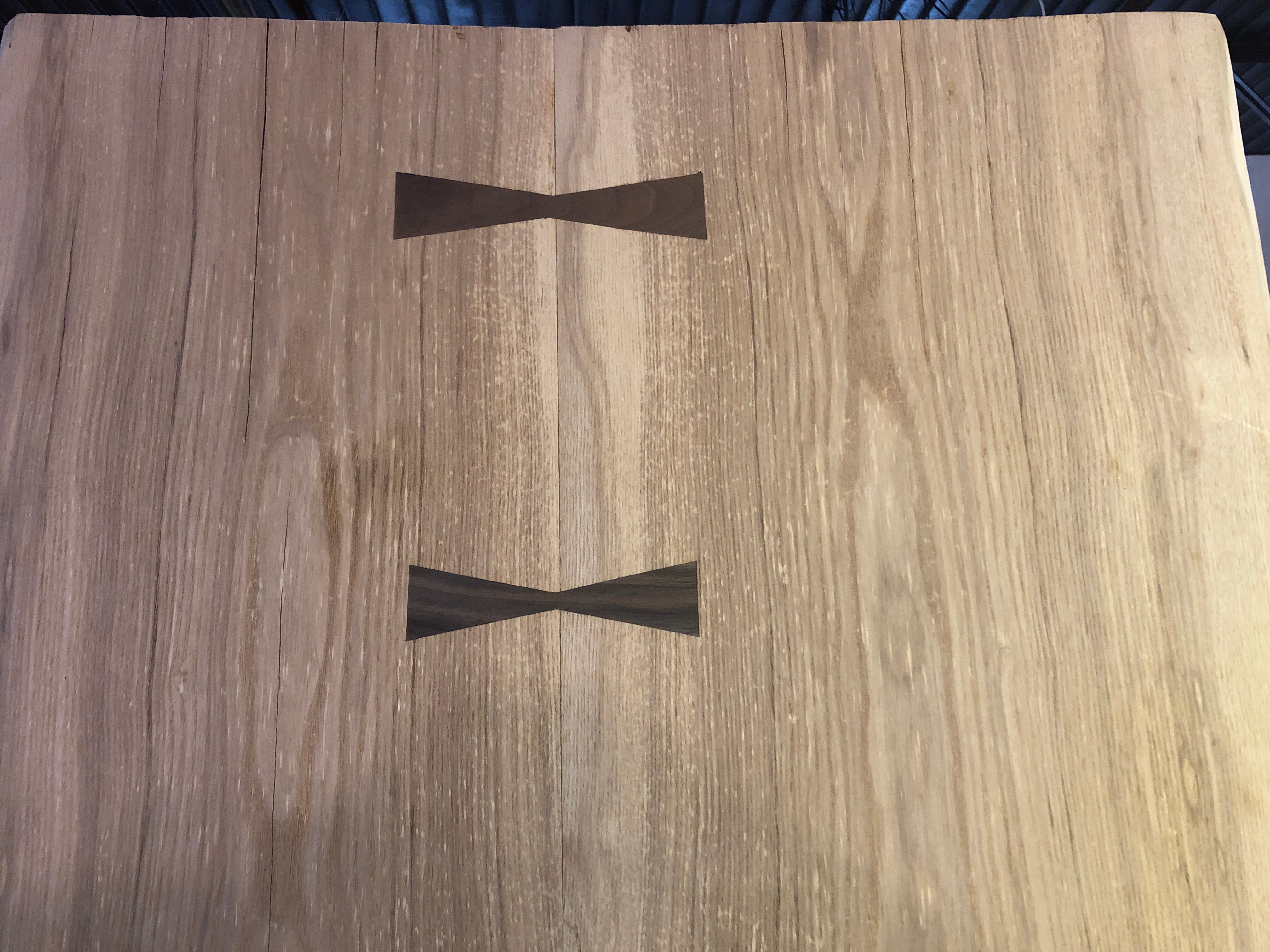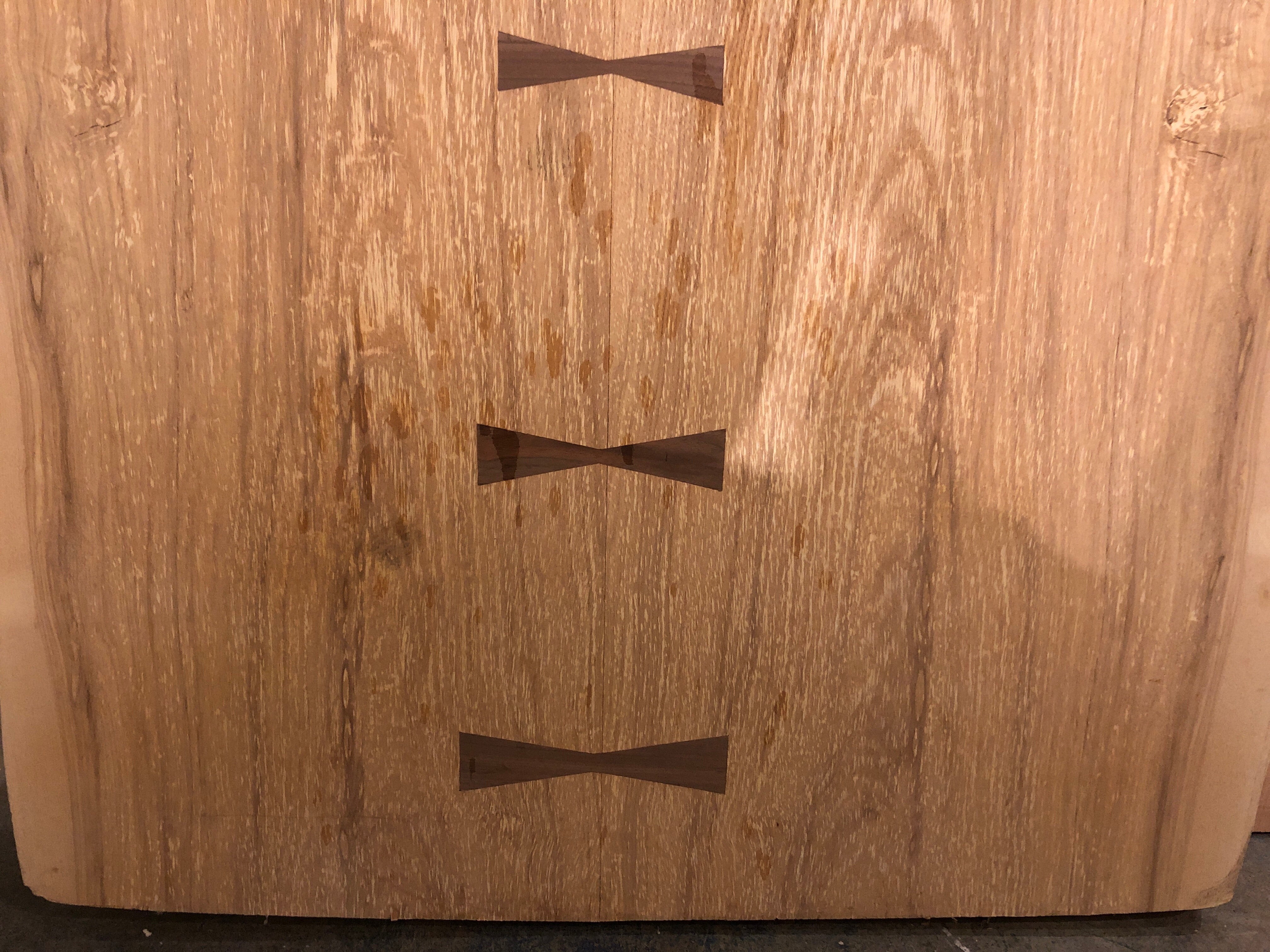 The grain on this Swamp Ash table is incredible. Embellished with Black Walnut bow ties this piece is pre-prepped and perfect for its second life home. Available as a pre-prepped live edge top and also as a fully finished piece with a choice of fabricated steel or hand crafted solid wood table base. All of our live edge dining tables are finished with 6 coats of satin lacquer for an amazing finish that is both durable as well as beautiful.