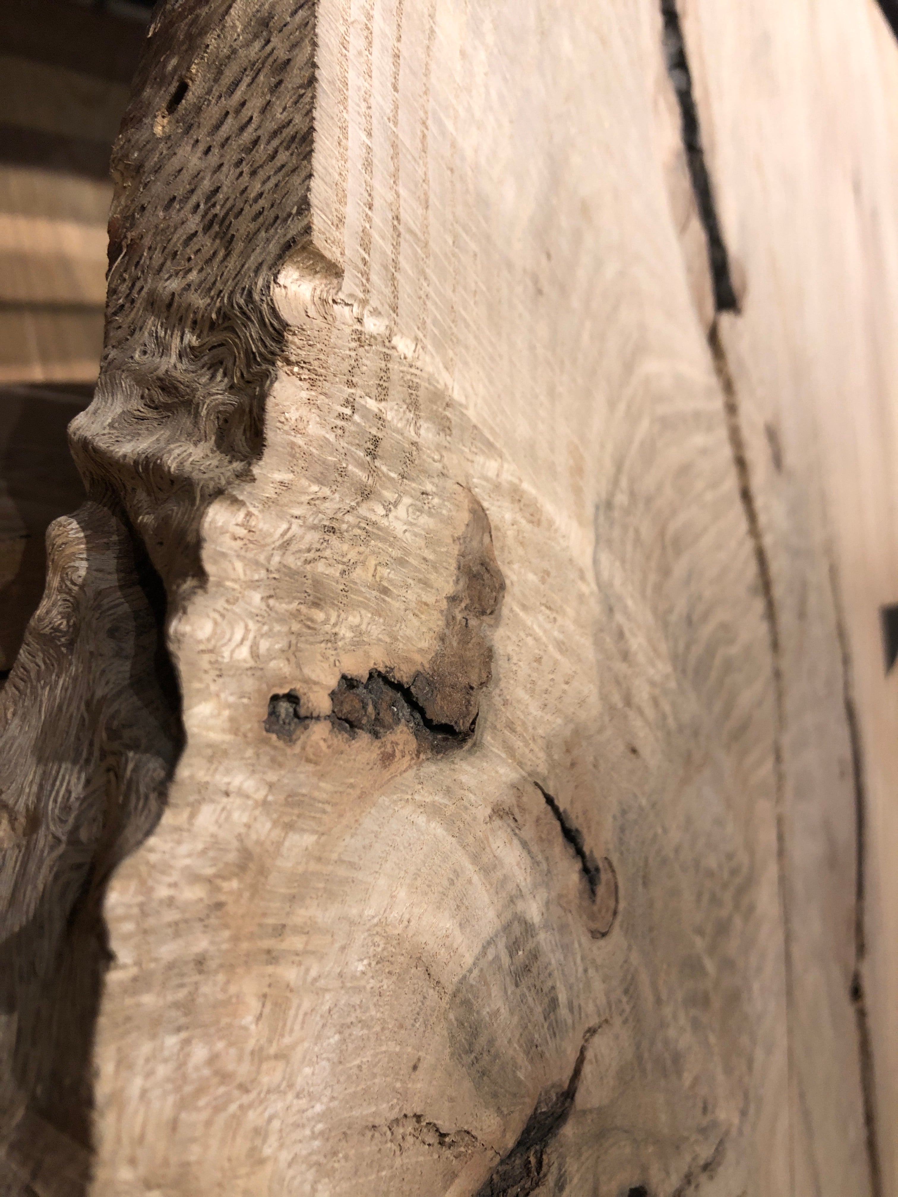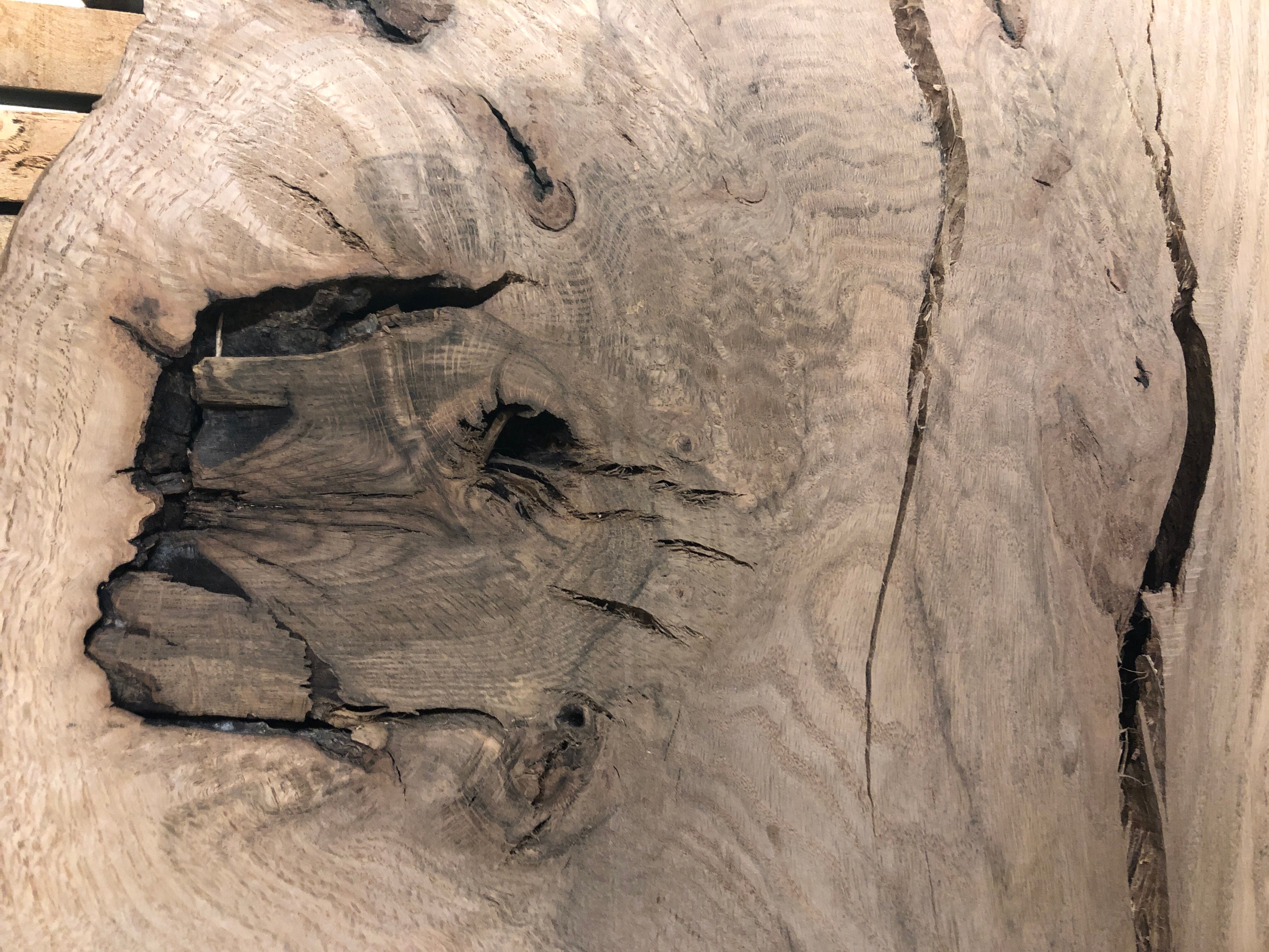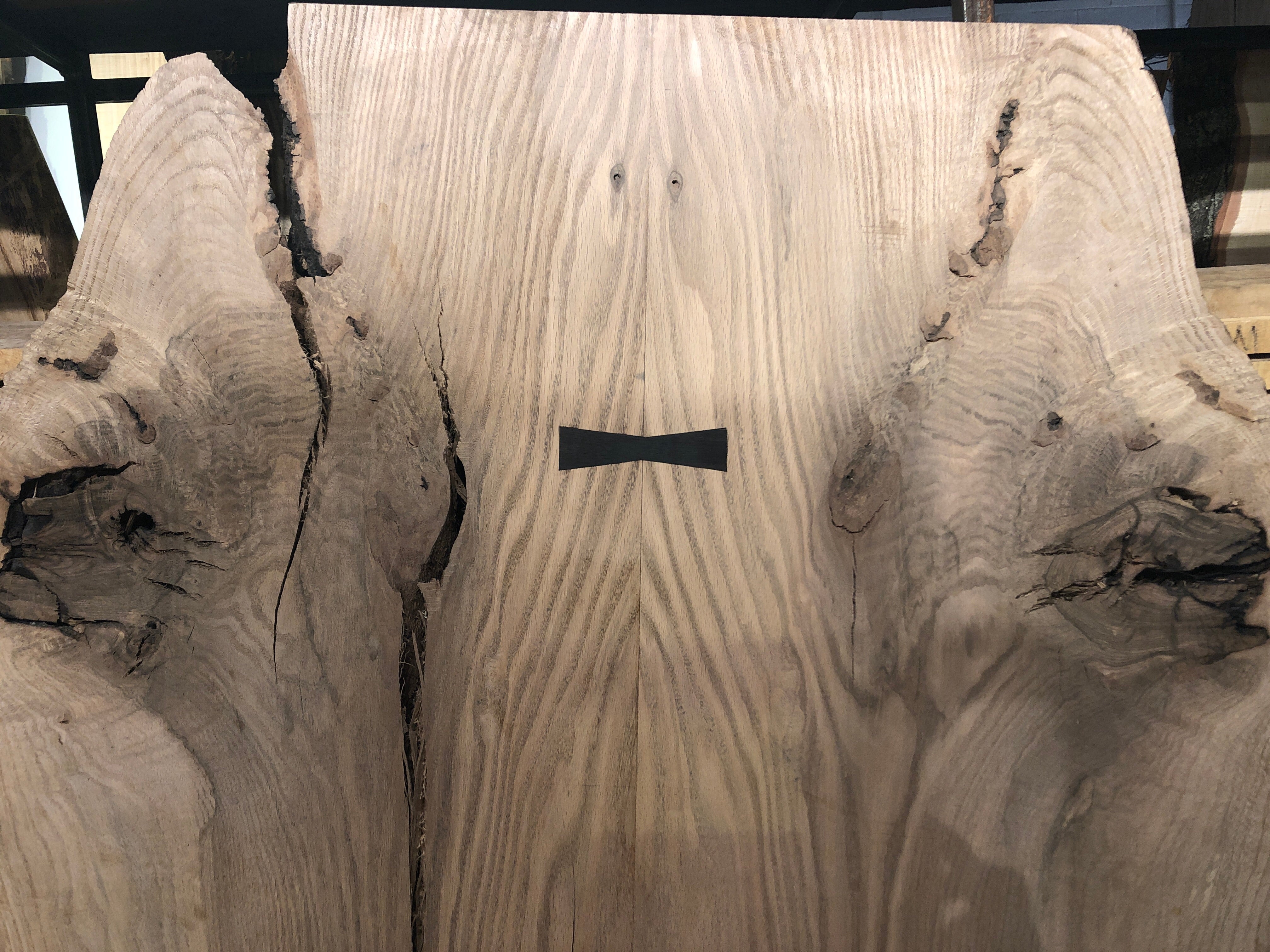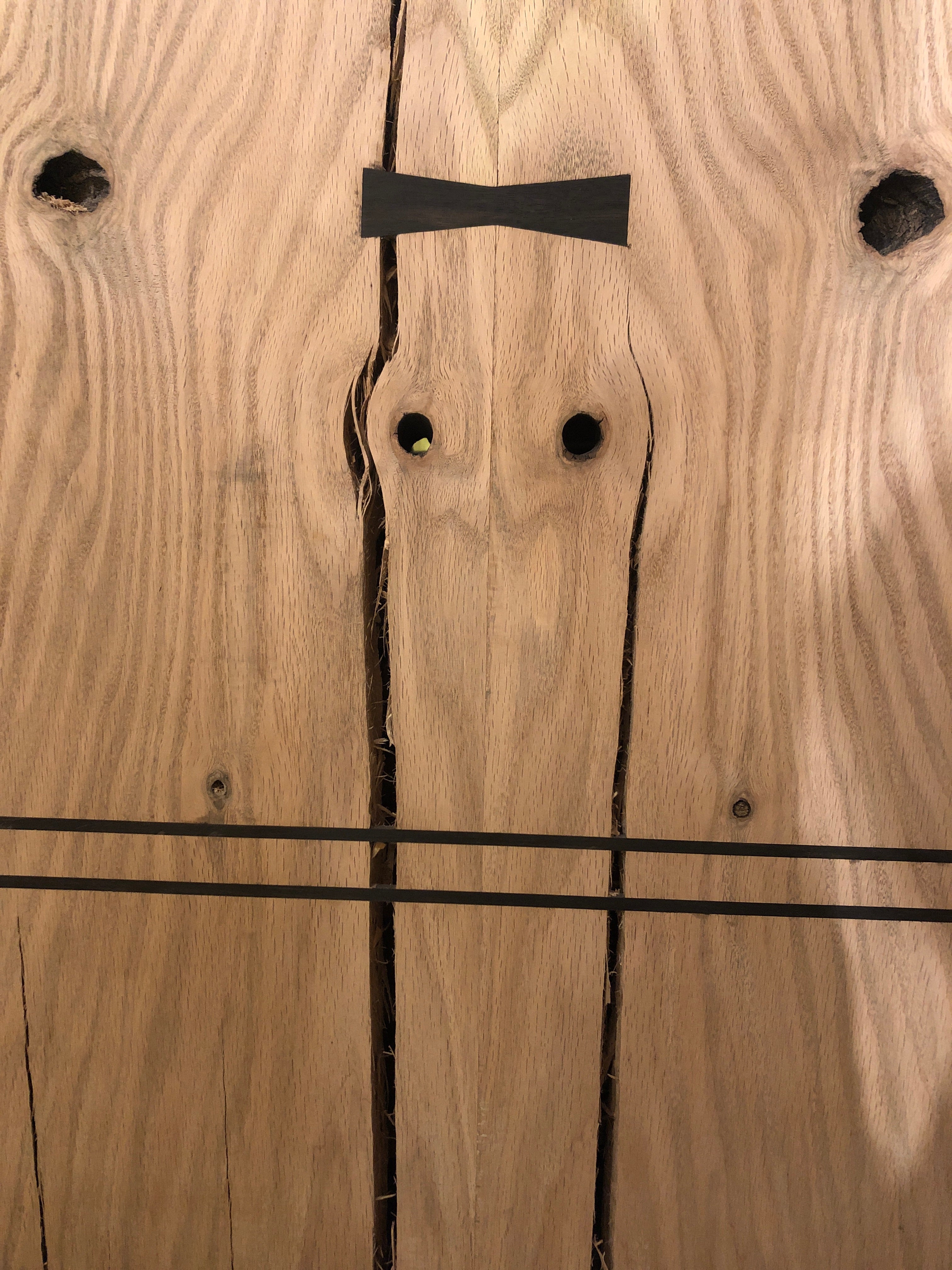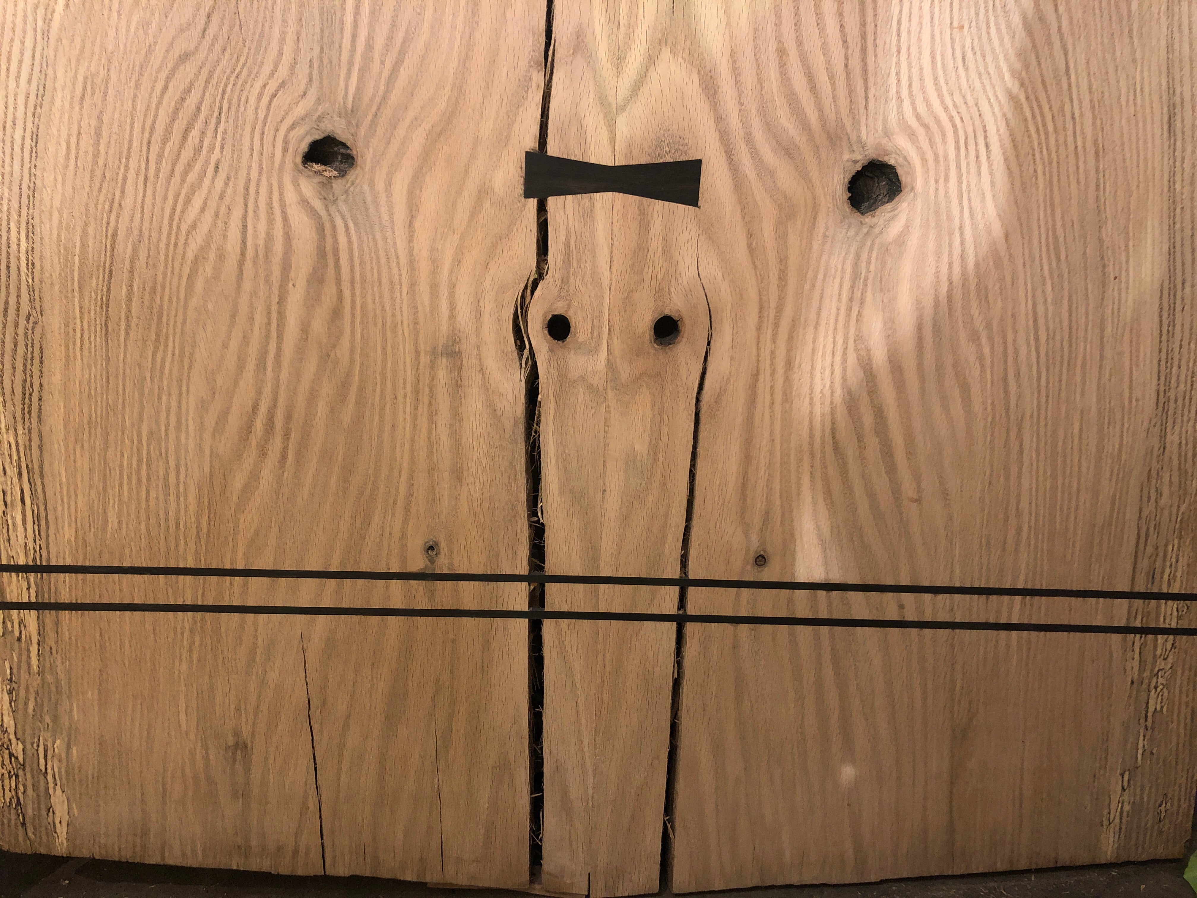 This Old Growth Red Oak table is absolutely gorgeous. Embellished with Macassar Ebony bowties and inlays , this piece is sure to make a statement. Perfect for an island top, dining table, desk and more. This piece is sold as a finished top only with options to purchase with a choice of fabricated steel or solid wood table base.