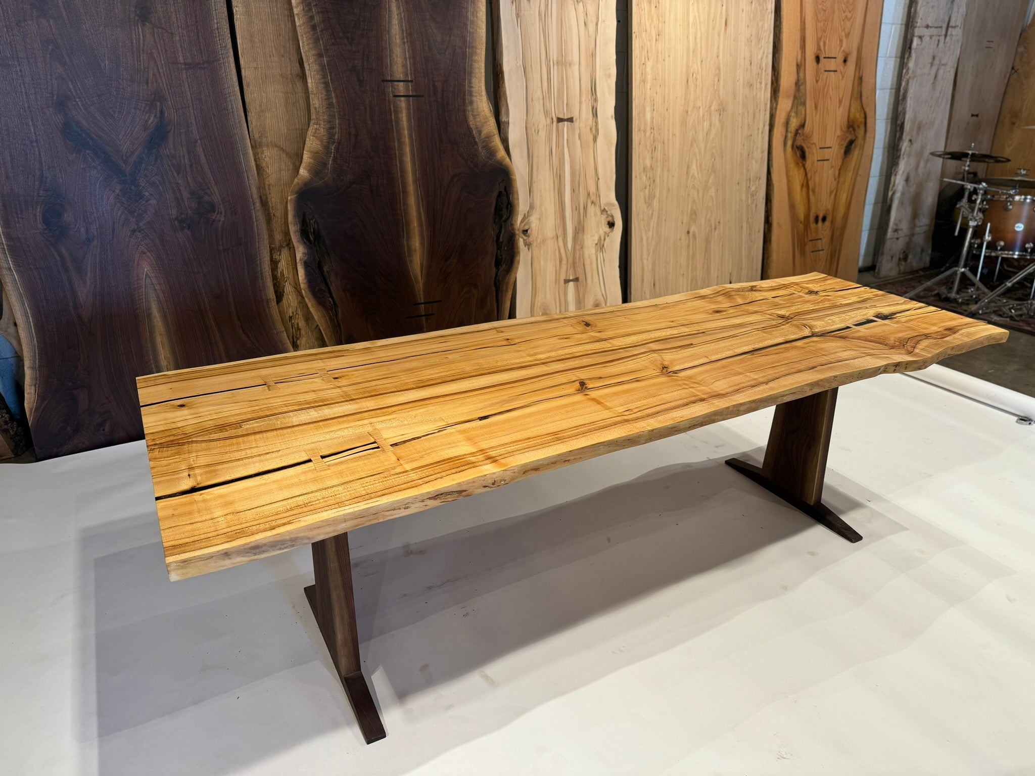 Maple Embellished with Curly Maple on Black Walnut Base – Live Edge Dining Table (96” x 32”)